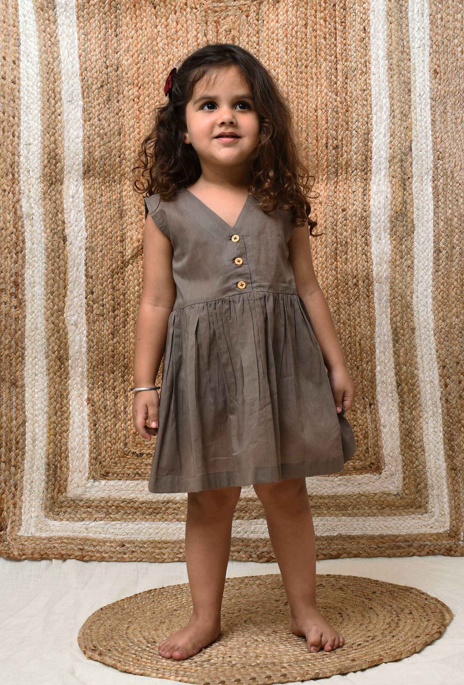 This greyish brown dress is made from premium quality mul mul cotton fabric to give your little one a relaxed look. Team it up with matching sandals and cute headbands for the perfect casual outing look.