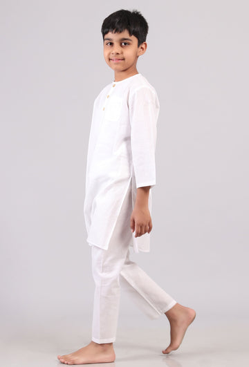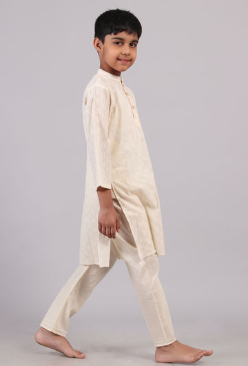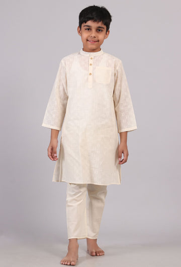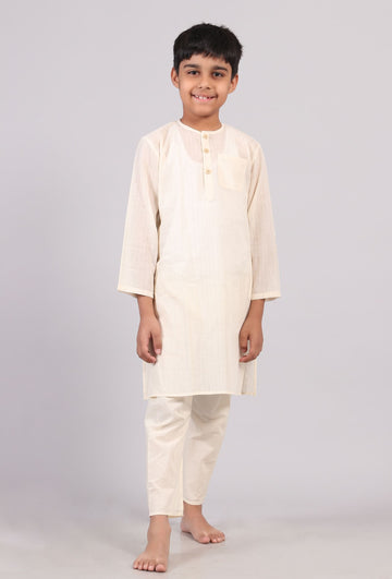 Your little baby boy will look classy when you dress him up in this dress set from Tjori. This beautiful elegant kurta pyjama set is made up of premium cotton material. Ideal for all party occasions, birthday, festive, and gifting....