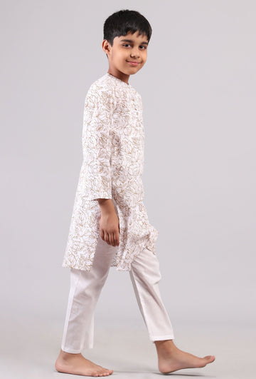 Set of 2: Brown Floral Hand Block Print Kurta Pyjama Set
