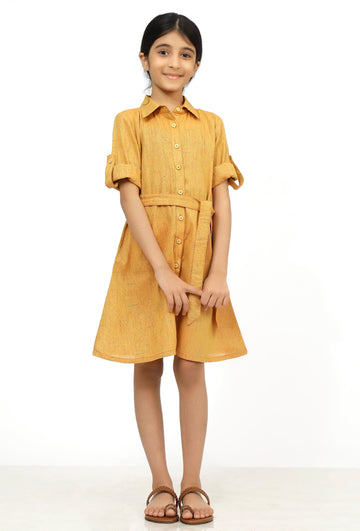 Rustic Melange Cotton Tunic Dress With Waist Belt