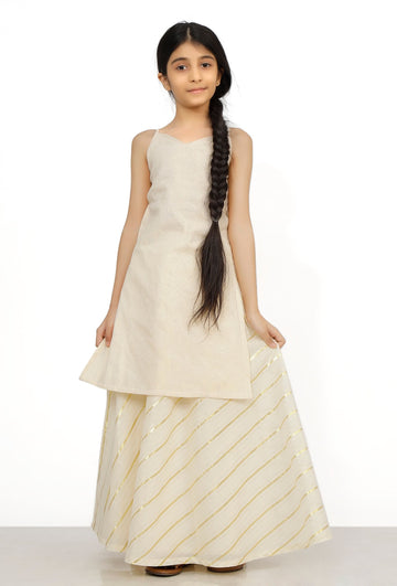 This beautiful Off white Slip Kurta with golden stripes skirt is for your little ones. The malmal fabric is best for kids as it is super soft, made in 100% malamal and is uber comfortable. Dimension In Inches: Length -...
