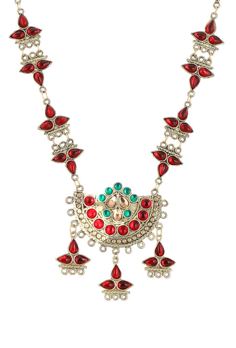 Red German Silver Gold Plated Necklace