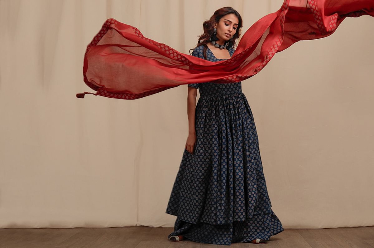 Bring in your ethnic style back to spring summer. Nothing says summer like a pair of crisp dhoti pants. Our dhoti have been handcrafted in pure, 100% cotton kota and pleated for a lovely finish. It showcases double layer which...