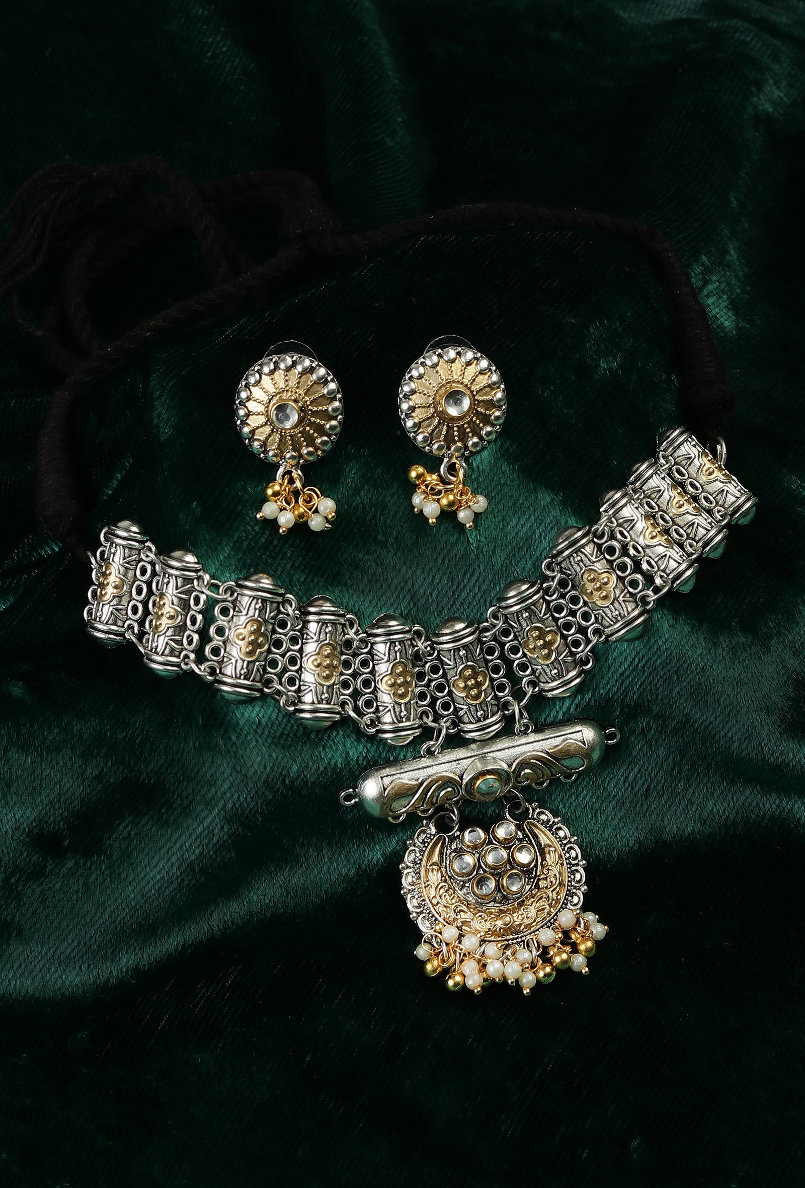 Chandrika Rajwada Oxidised Crescent Necklace Set
