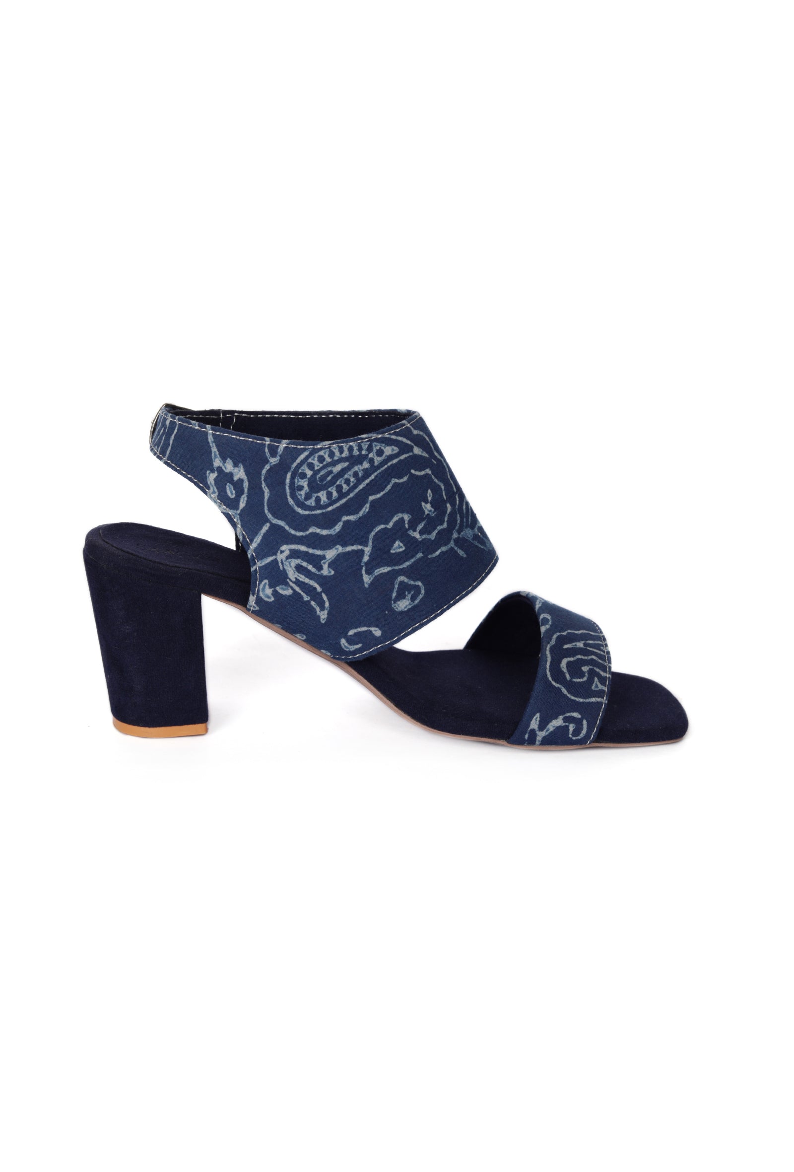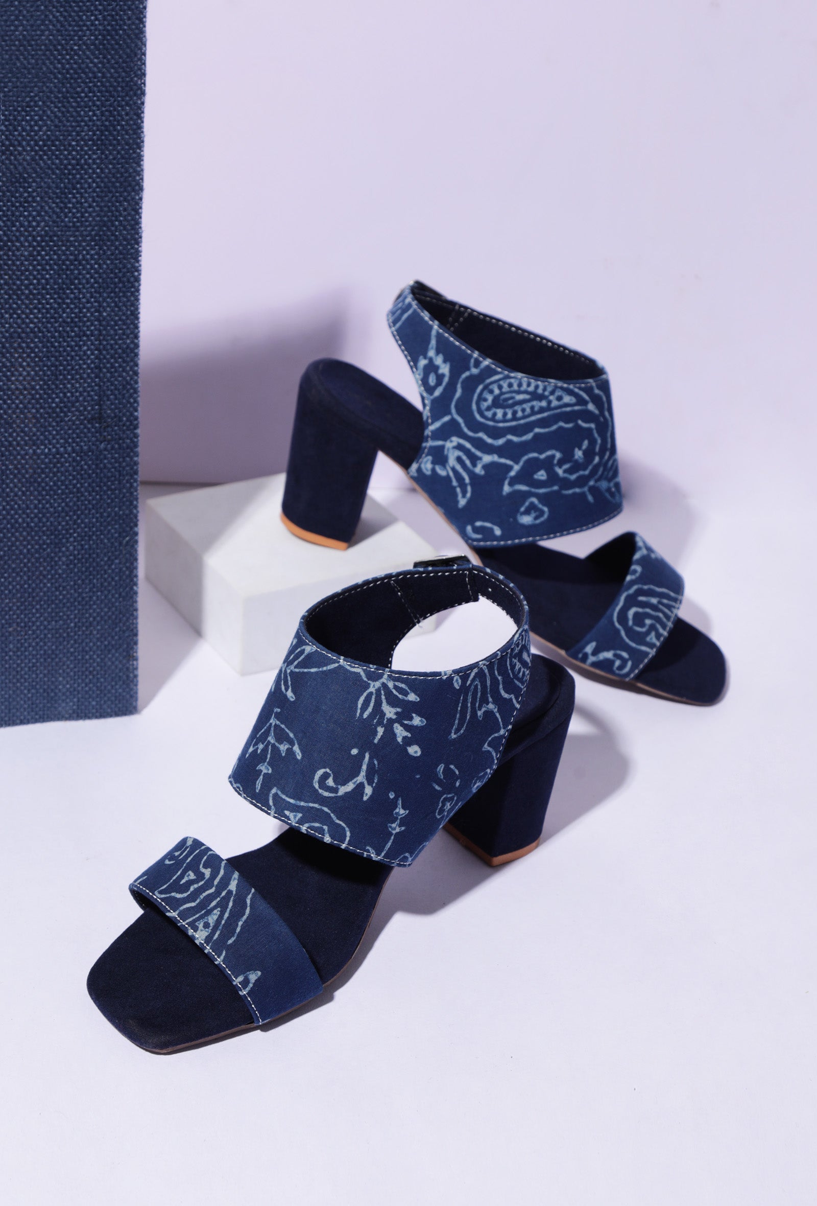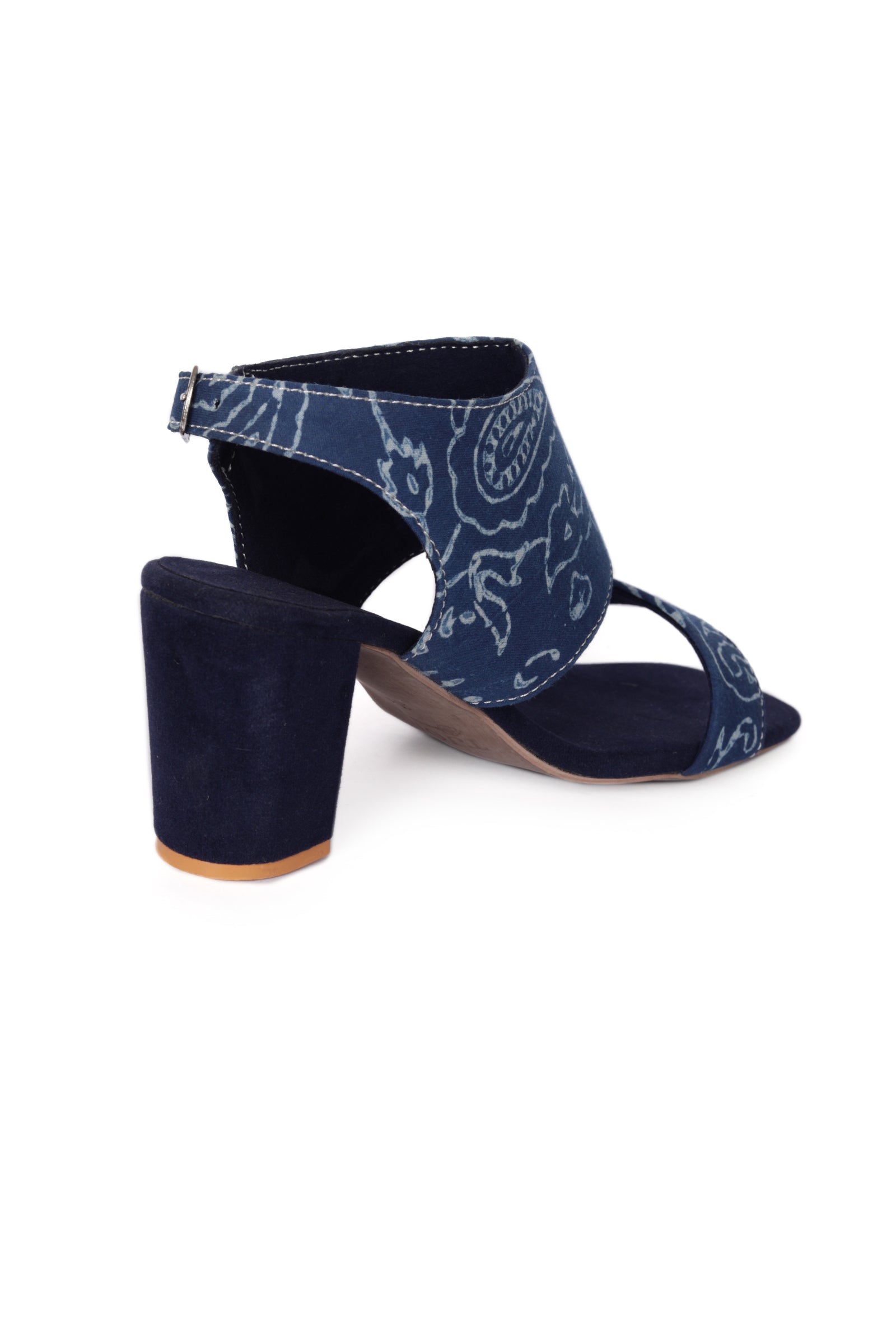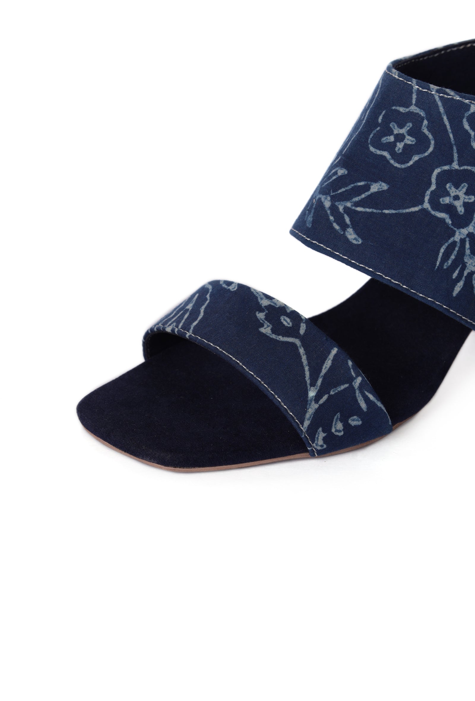 Indigo floral Cotton Strappy Block Heels