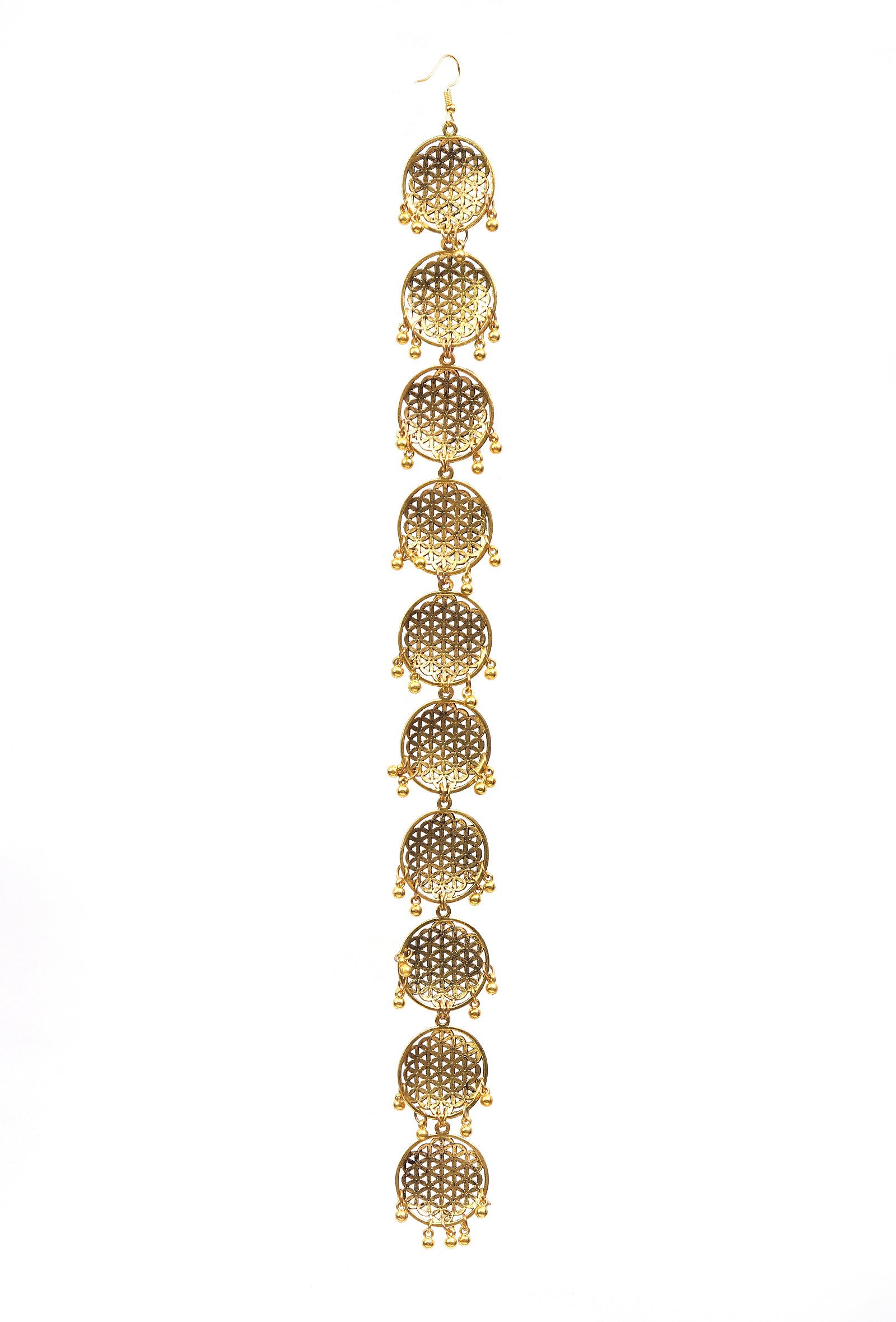 Maharani Kanak Royal Antique Gold Filigree Parandi showcases exquisite filigree artistry in an antique gold finish. Designed to adorn braided hair, it adds regal charm and traditional elegance to bridal looks, festive occasions, and cultural celebrations with timeless heritage appeal.