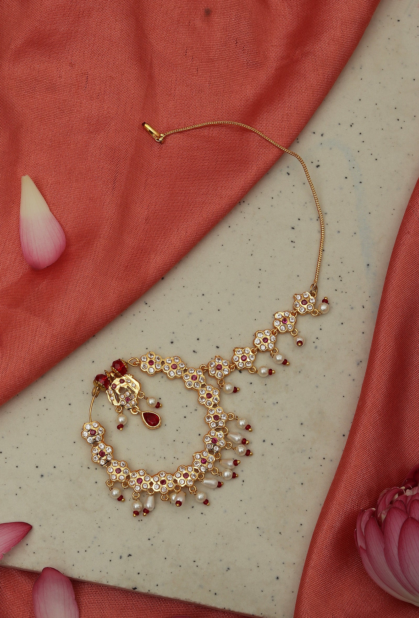Rajwadi Ruby Kundan Pearl Nath
