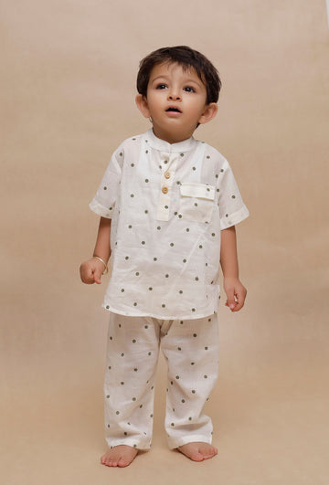 Summers are around the corner and it's time to dress up your baby boy in our adorable Polka Dot Printed Shirt and Printed Pants! This set is crafted in cotton material which will keep your boy at an ease all...