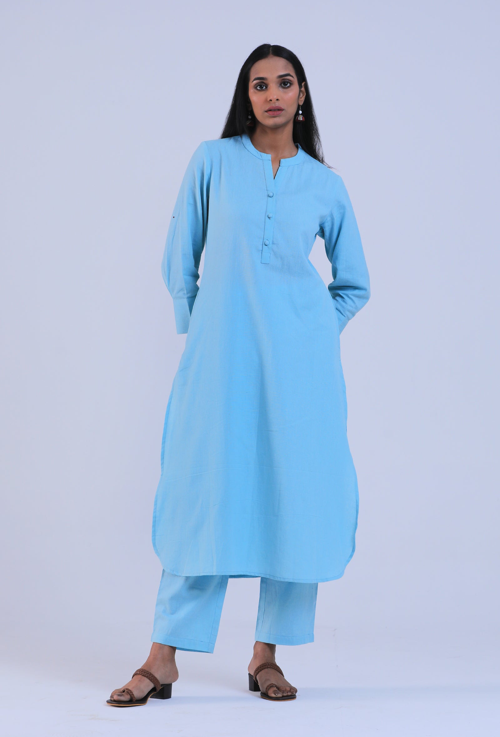 Set Of 2: blue cotton V-neck kurta & pant set. Color: Blue Material: Cotton Occasion: Casual