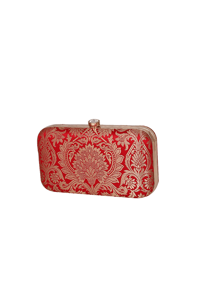 Scarlet Red Brocade Box Clutchwith Sling (8 X 2 X 4.5)