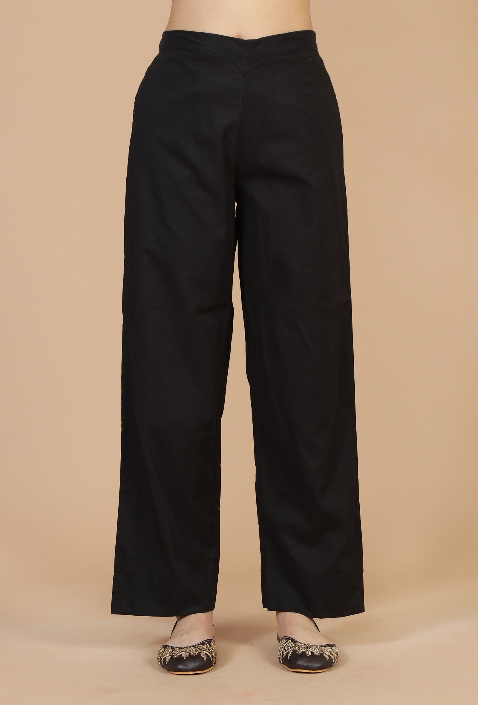 Solid Black Cotton Pants (Size) :