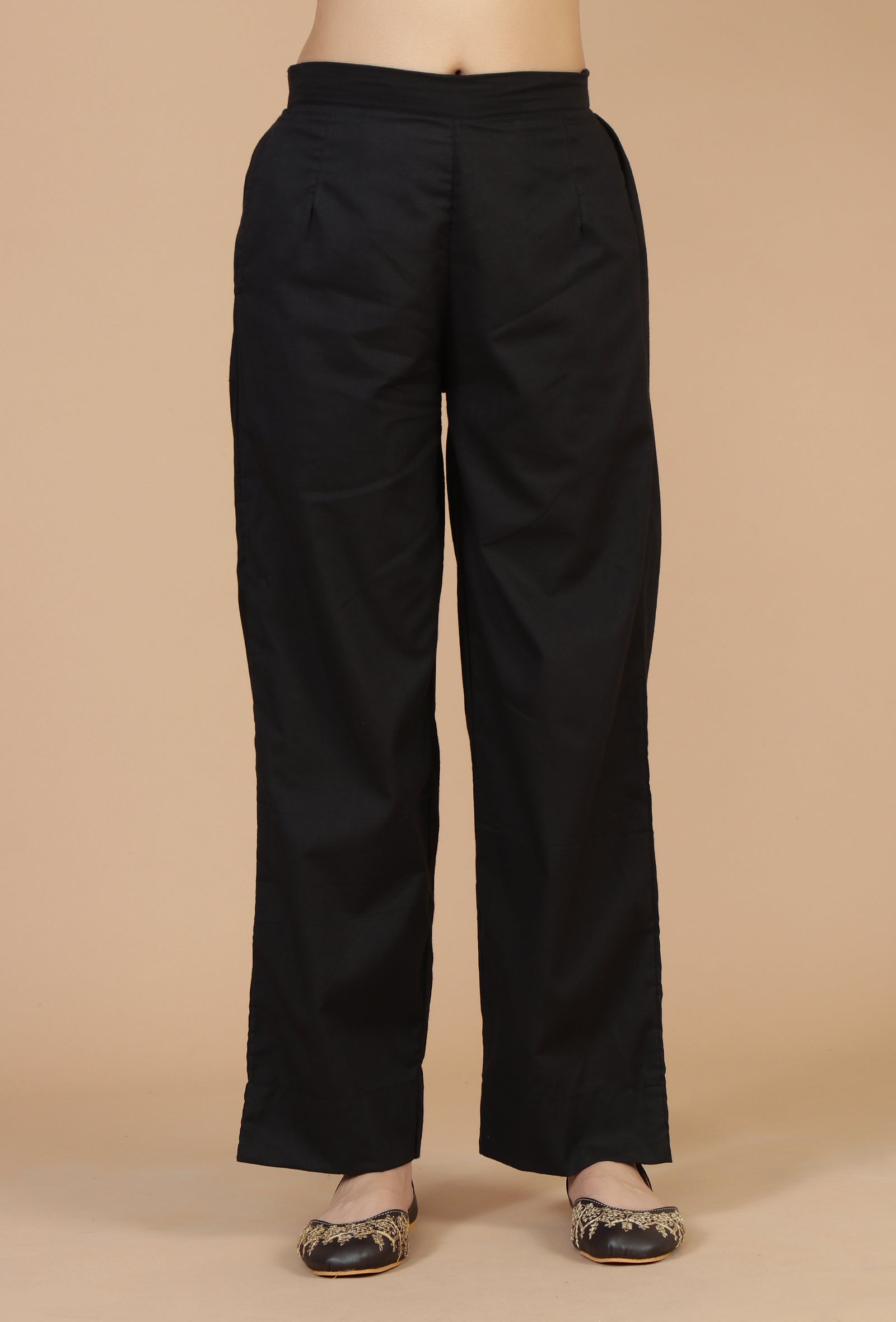 This stylish set features a Baagh hand block printed Angrakha-style kurta, accentuated with elegant lace detailing. Paired with classic solid black pants, it offers a balanced blend of tradition and sophistication—ideal for both casual outings and semi-formal occasions.