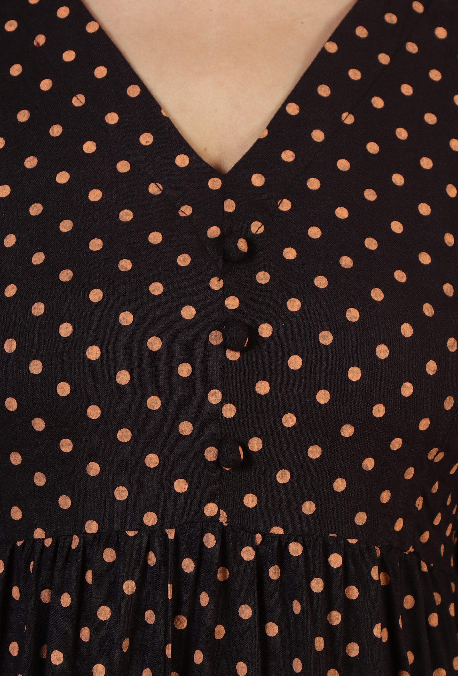 Black Rayon Polka Printed Tiered Dress (Size) :