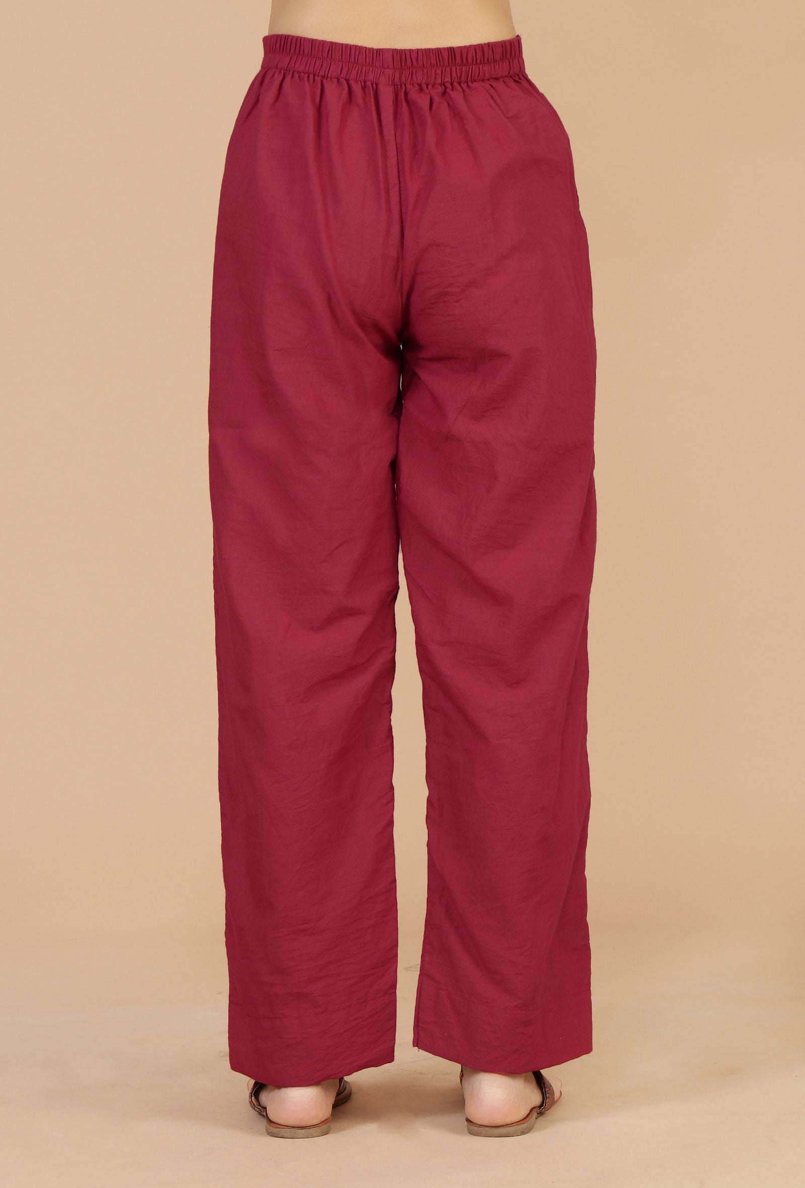 Make a graceful statement with this set featuring a maroon floral printed flared kurta adorned with elegant gota lace on the neckline and hem. Paired with solid red cotton pants, this ensemble blends festive charm with effortless comfort—perfect for special occasions or everyday elegance.