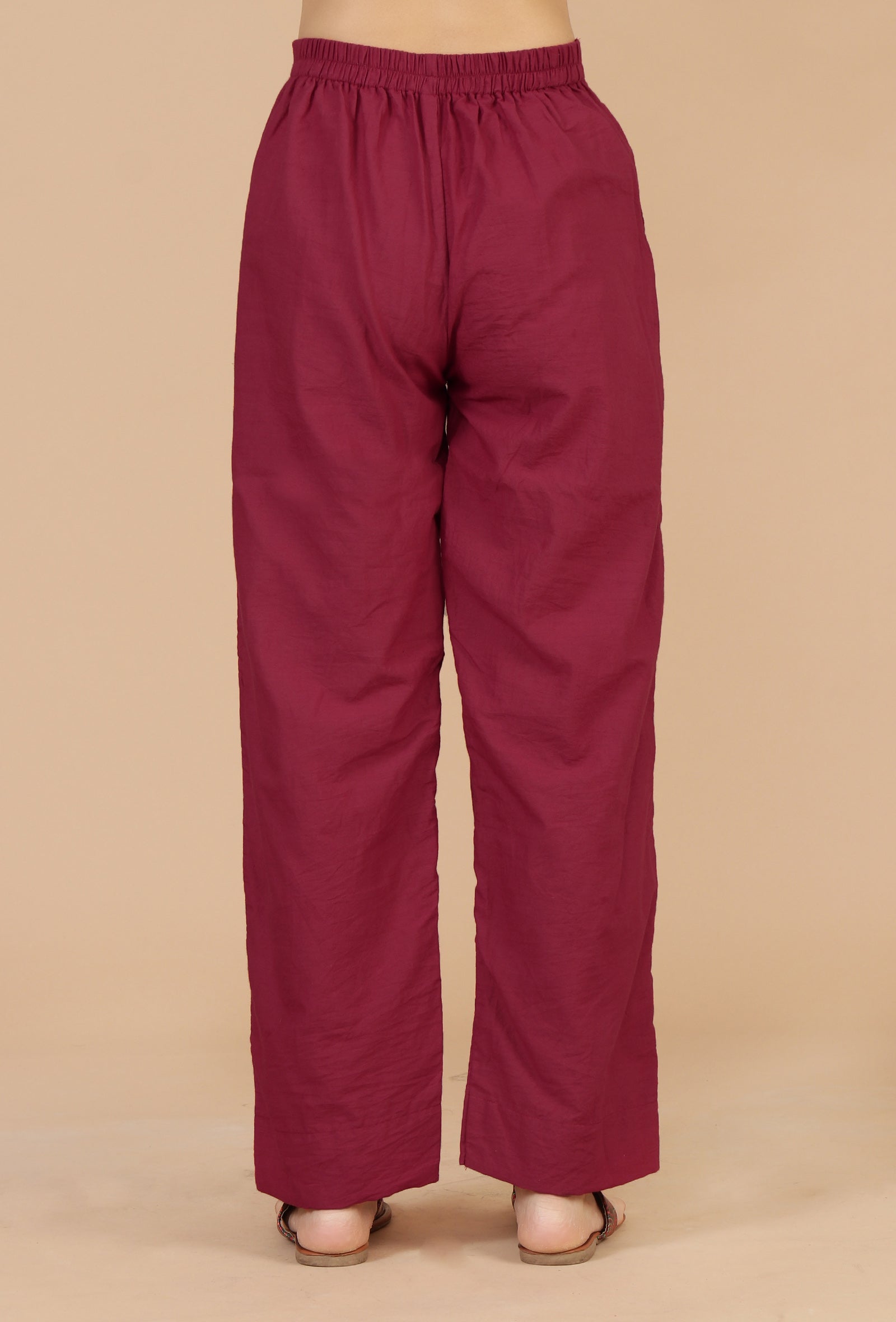 Elevate your ethnic wardrobe with this elegant set featuring a maroon hand block printed Angrakha-style kurta adorned with delicate tassel ties. Paired with solid cotton straight pants, this ensemble blends traditional charm with everyday comfort—perfect for festive gatherings or casual outings with a touch of grace.