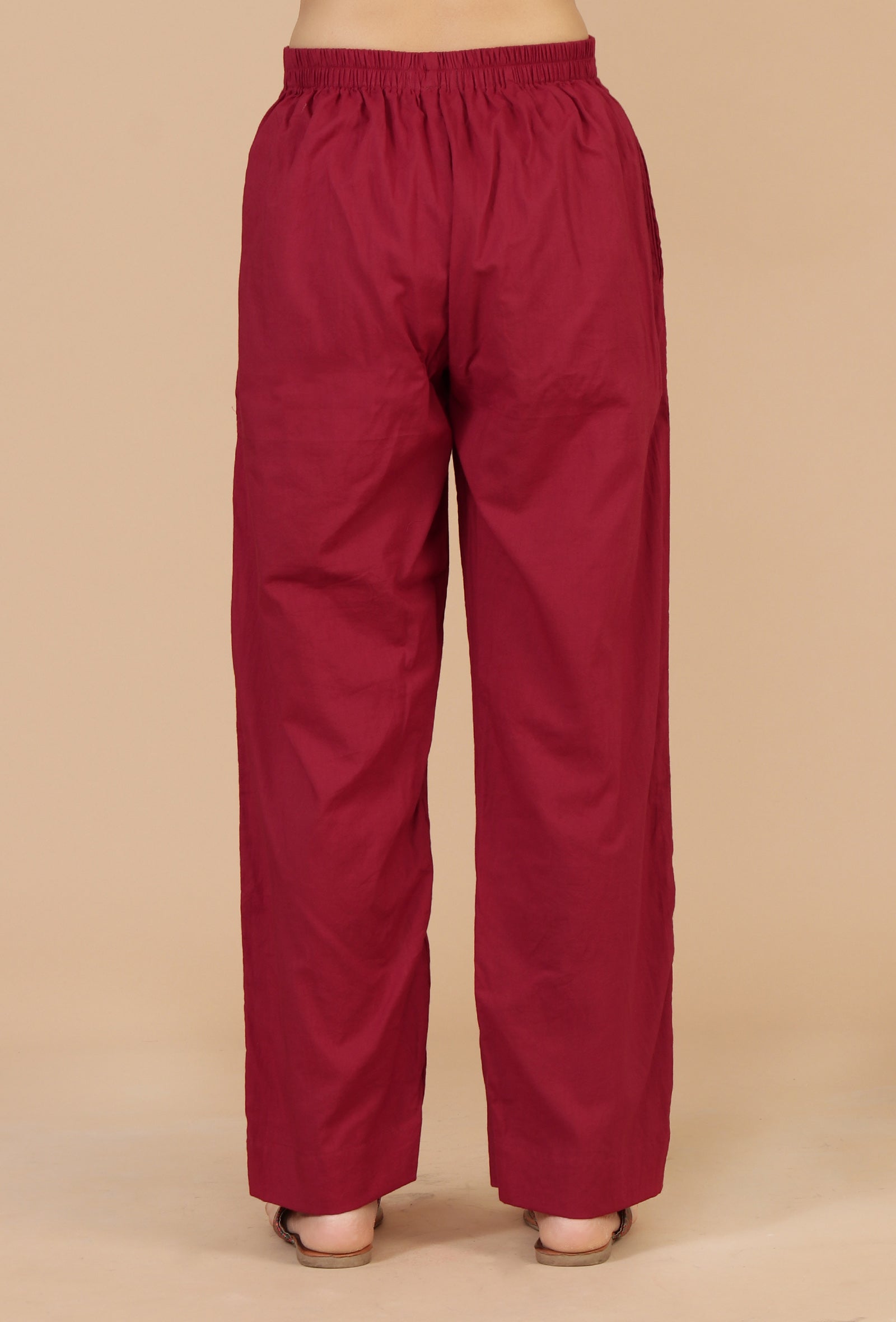 Set of 2: Maroon Printed Empire Kurta & Solid Cotton Pants