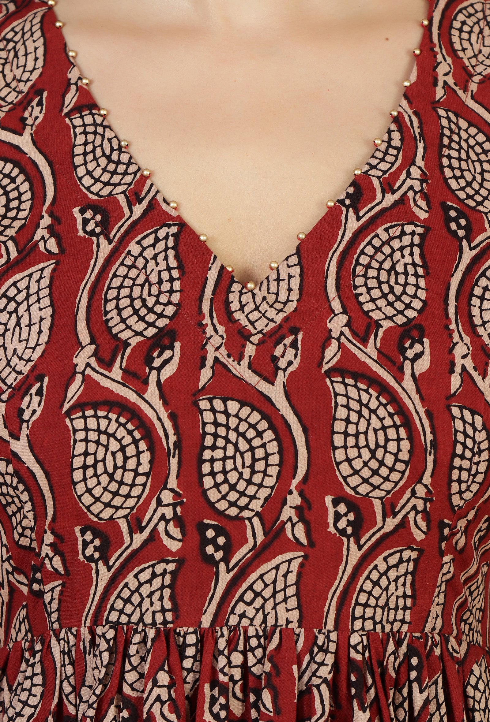 Hand Block Baagh Print Flared Kurta with Lace Detailing (Size) :
