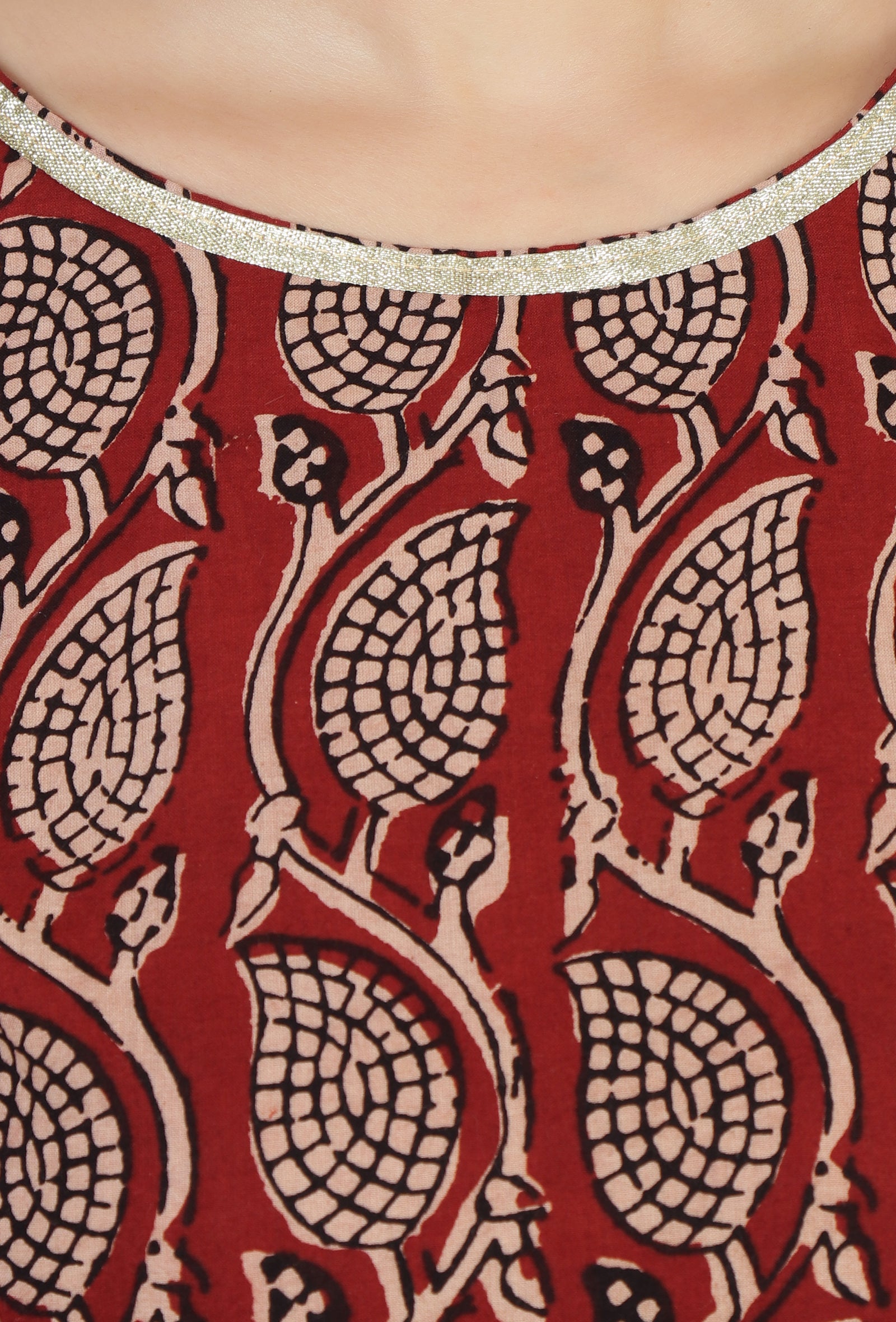 Maroon Elegance Handblock Printed Cotton Kurta (Size) :