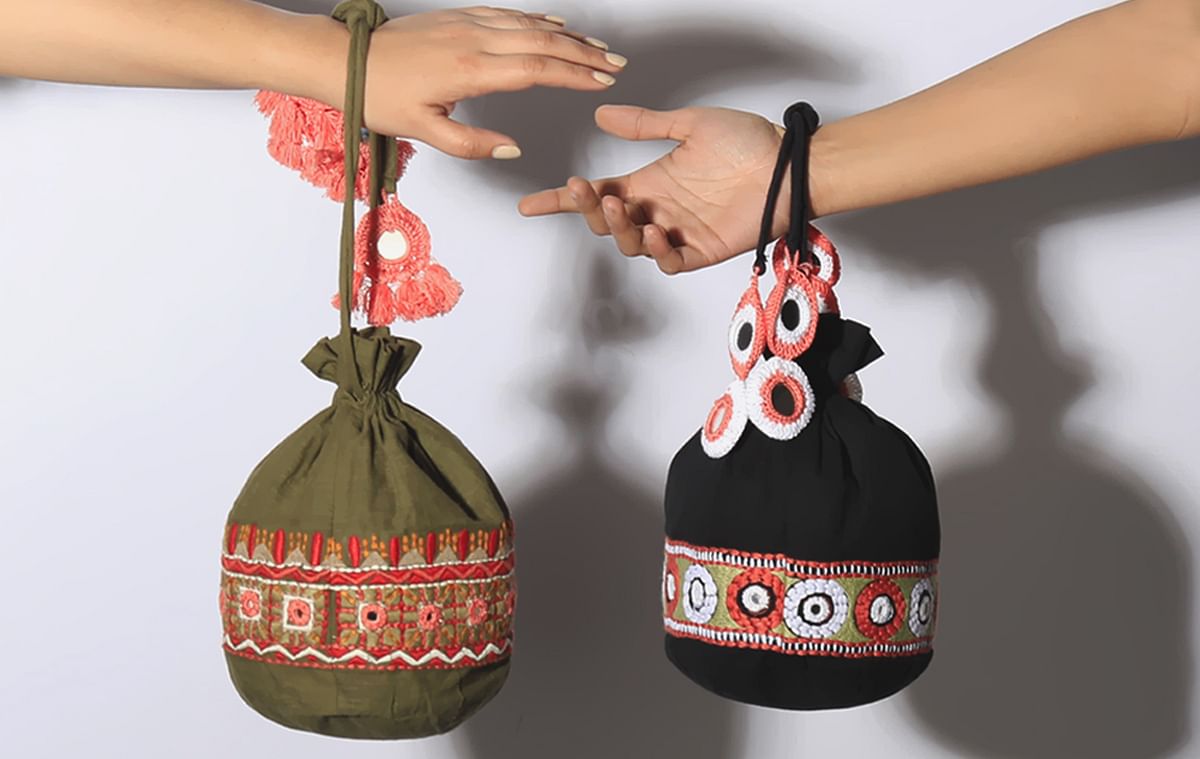 Potli bags can add so many elements to your outfits be it western or ethnic. This collection features Potlis with mirror work and intricate thread detailing and contrasting tassels!
