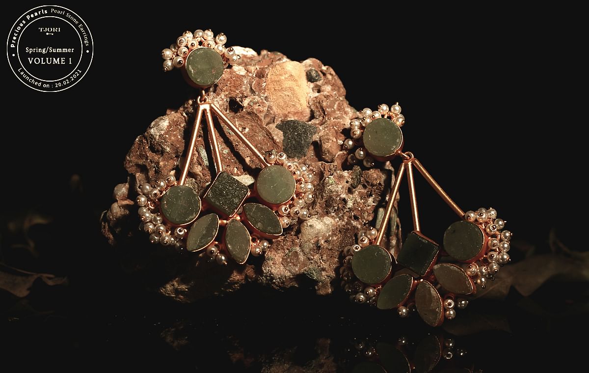 Keep aside those traditional loops and your look some angular dimension with this exquisite piece of pearl studded earrings.