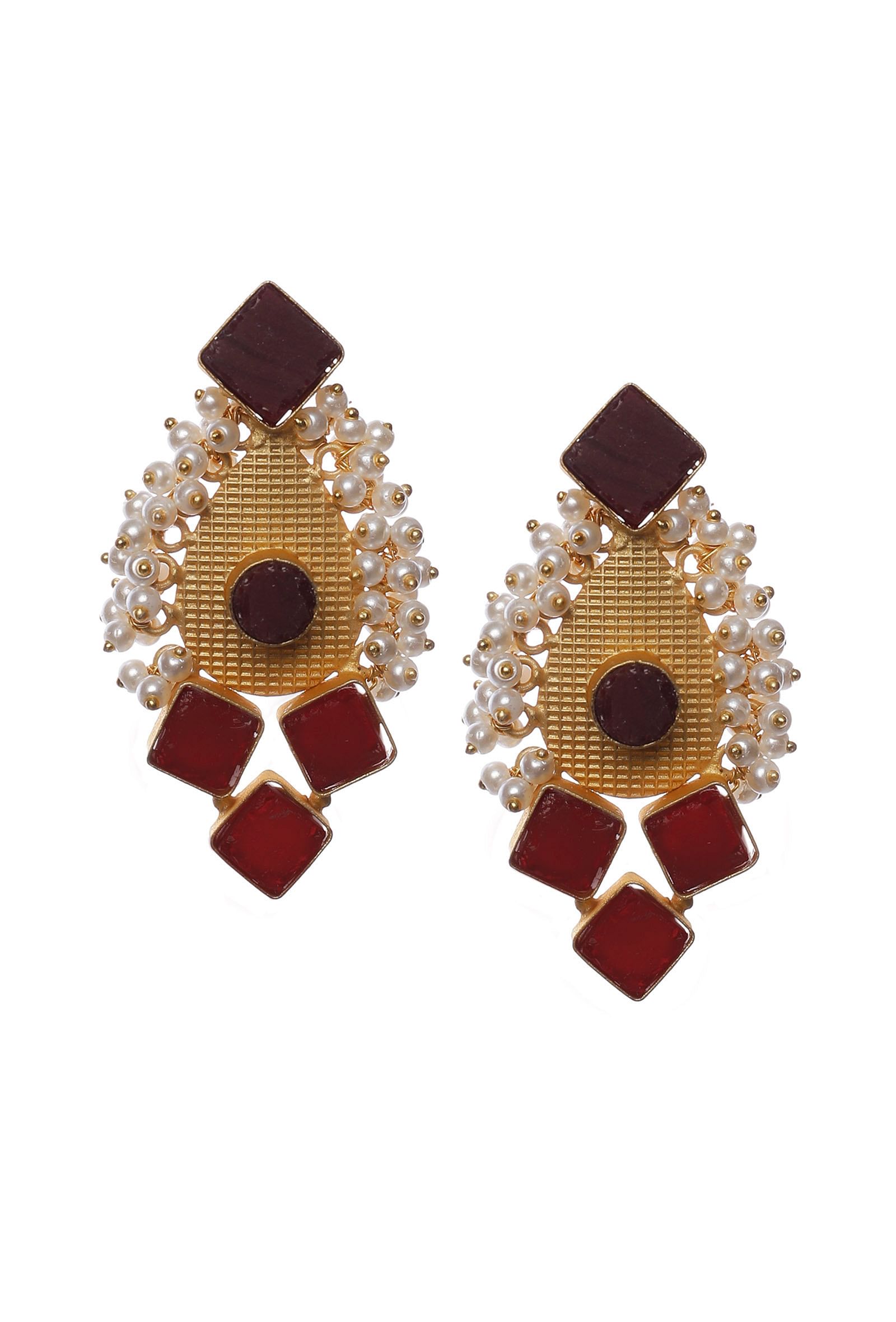 Red Gold Stone Pearl Earrings