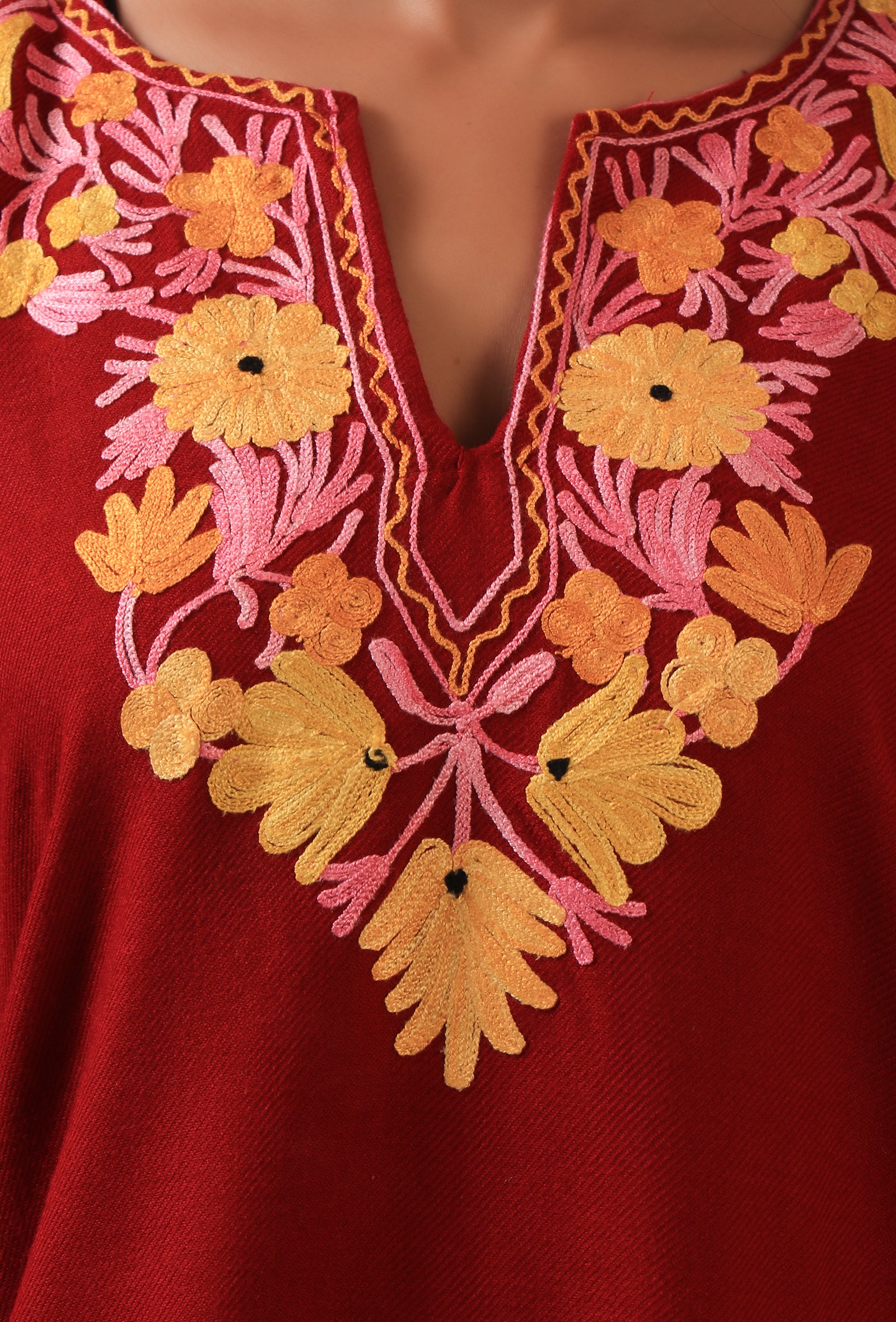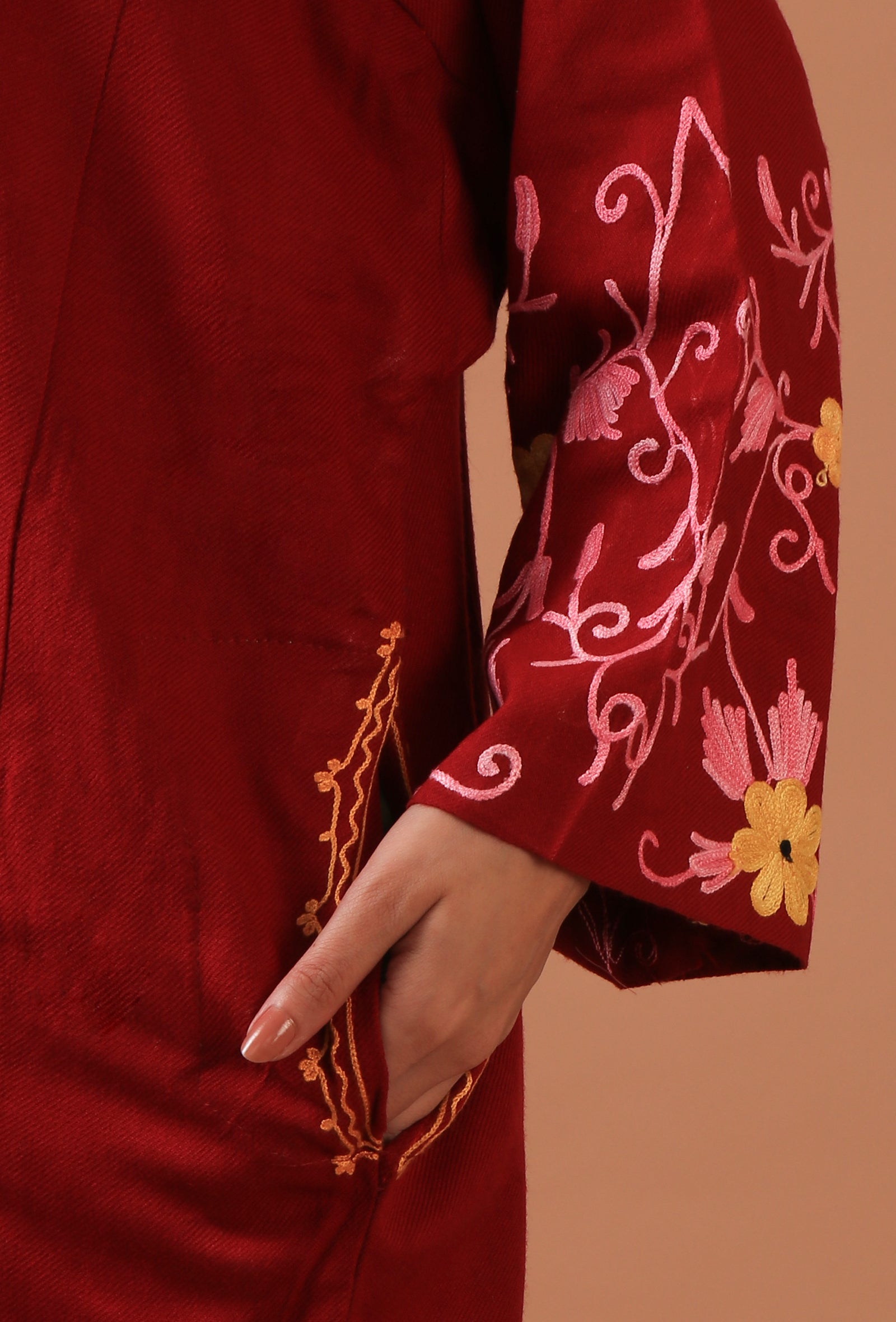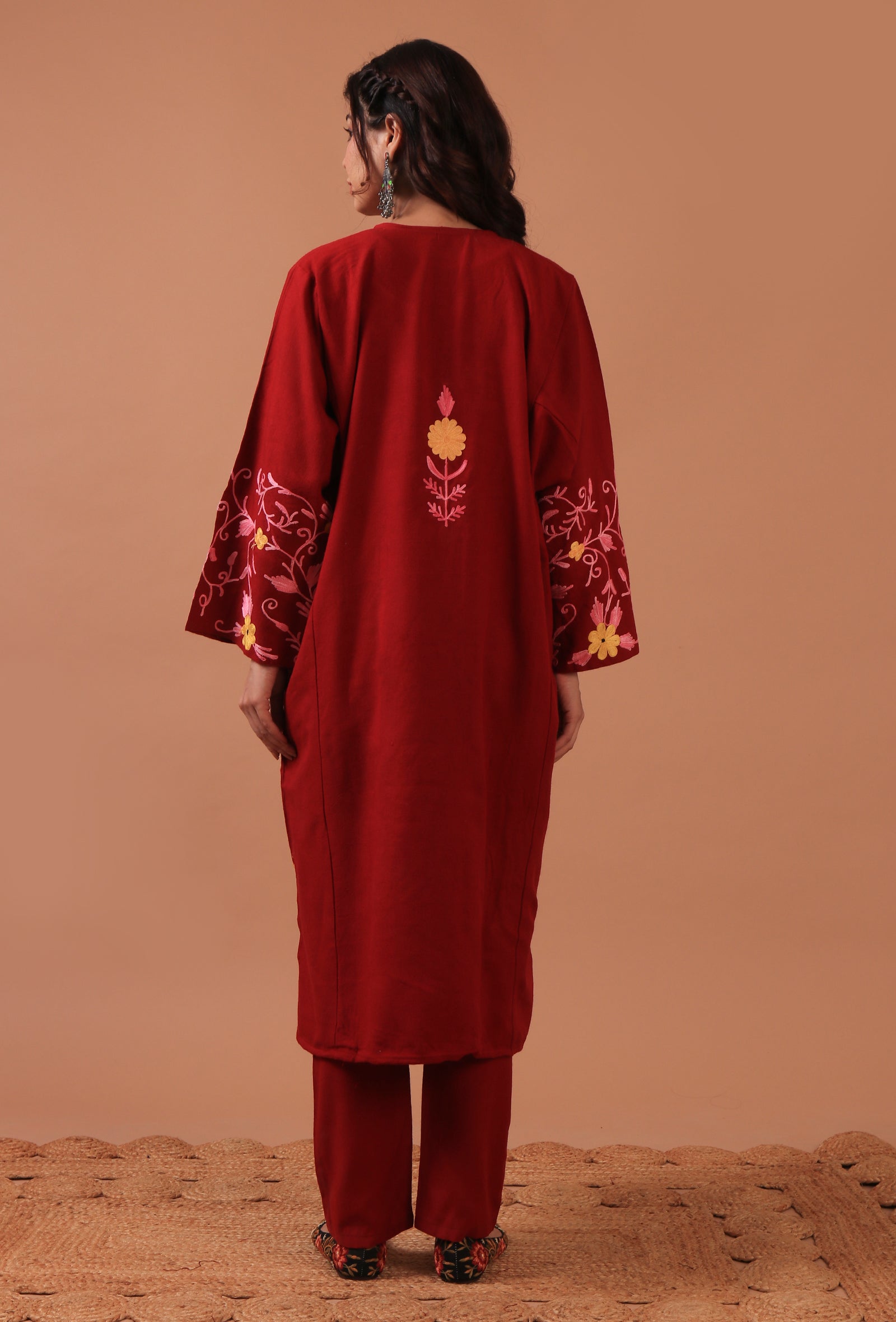 Old Brick Woolen Ari Embroidered Phiran- Free Size