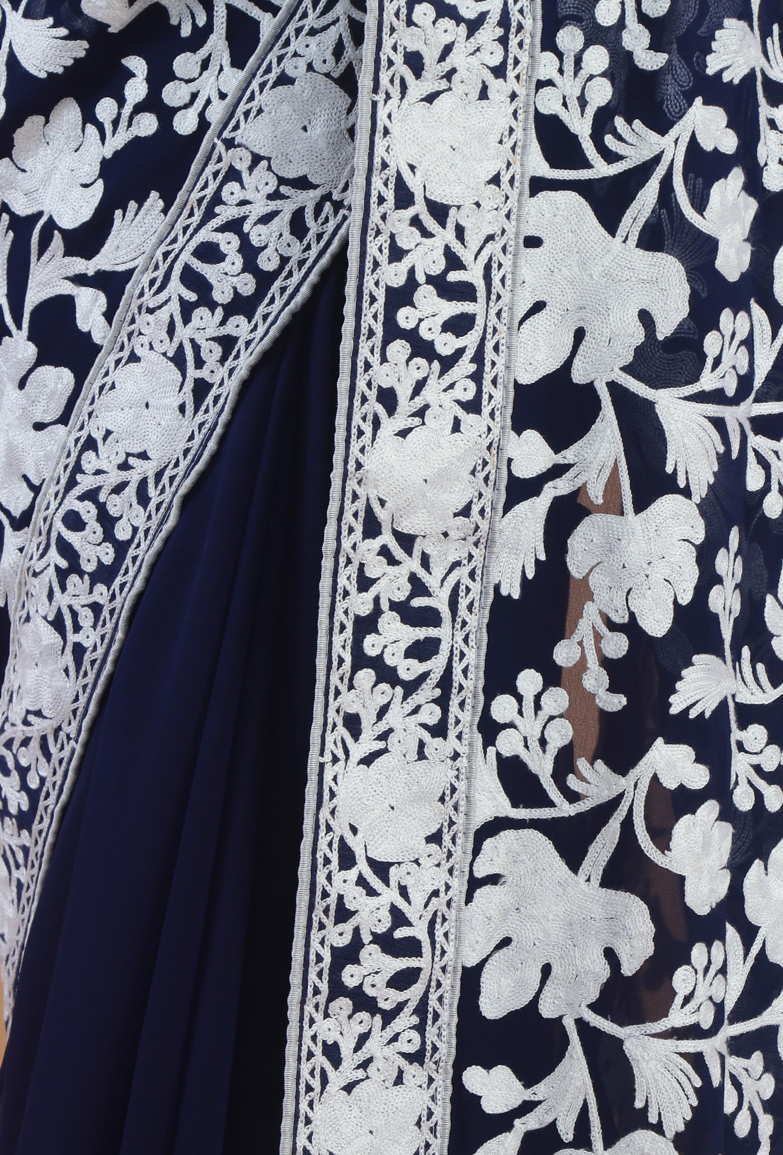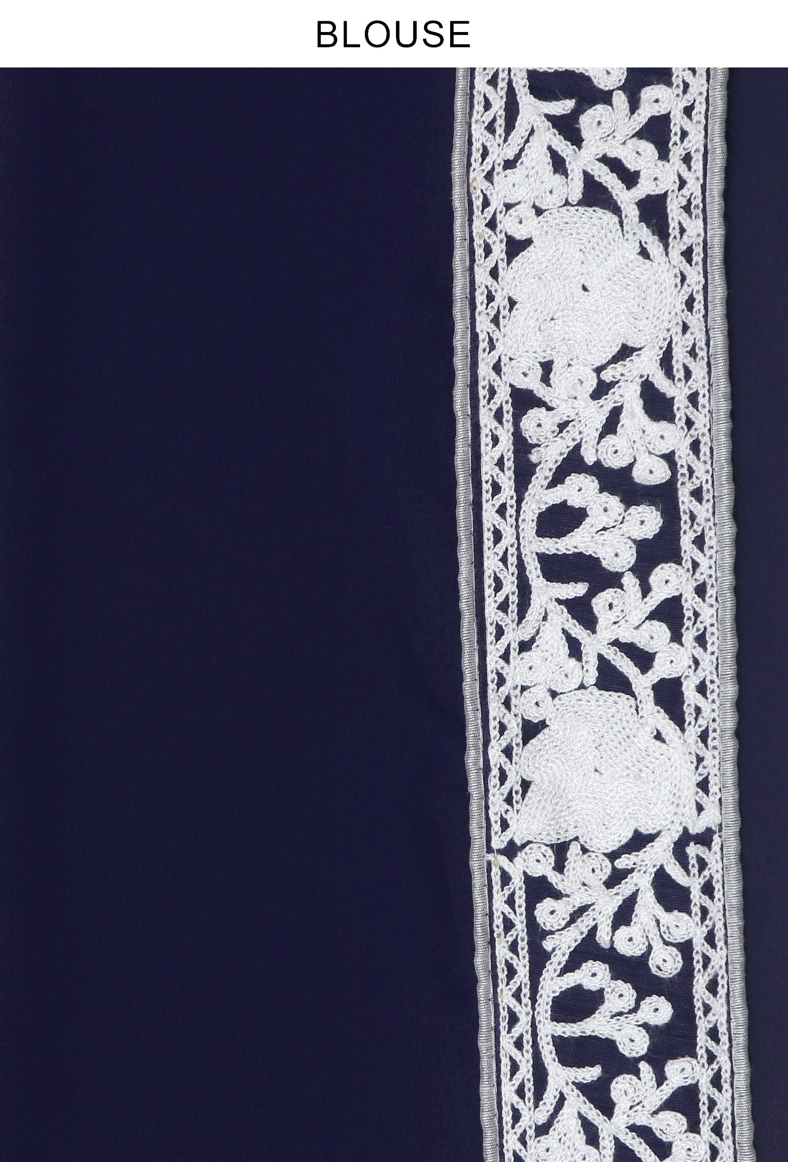 Embroidered Navy Blue Georgette Saree with Unstitched Blouse
