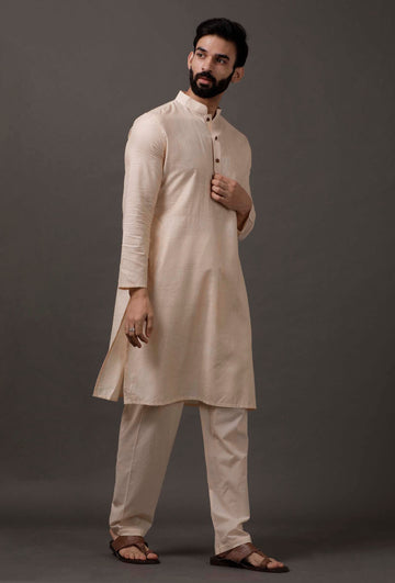 Set of 2: Cream Cotton Silk Check Kurta Pajama