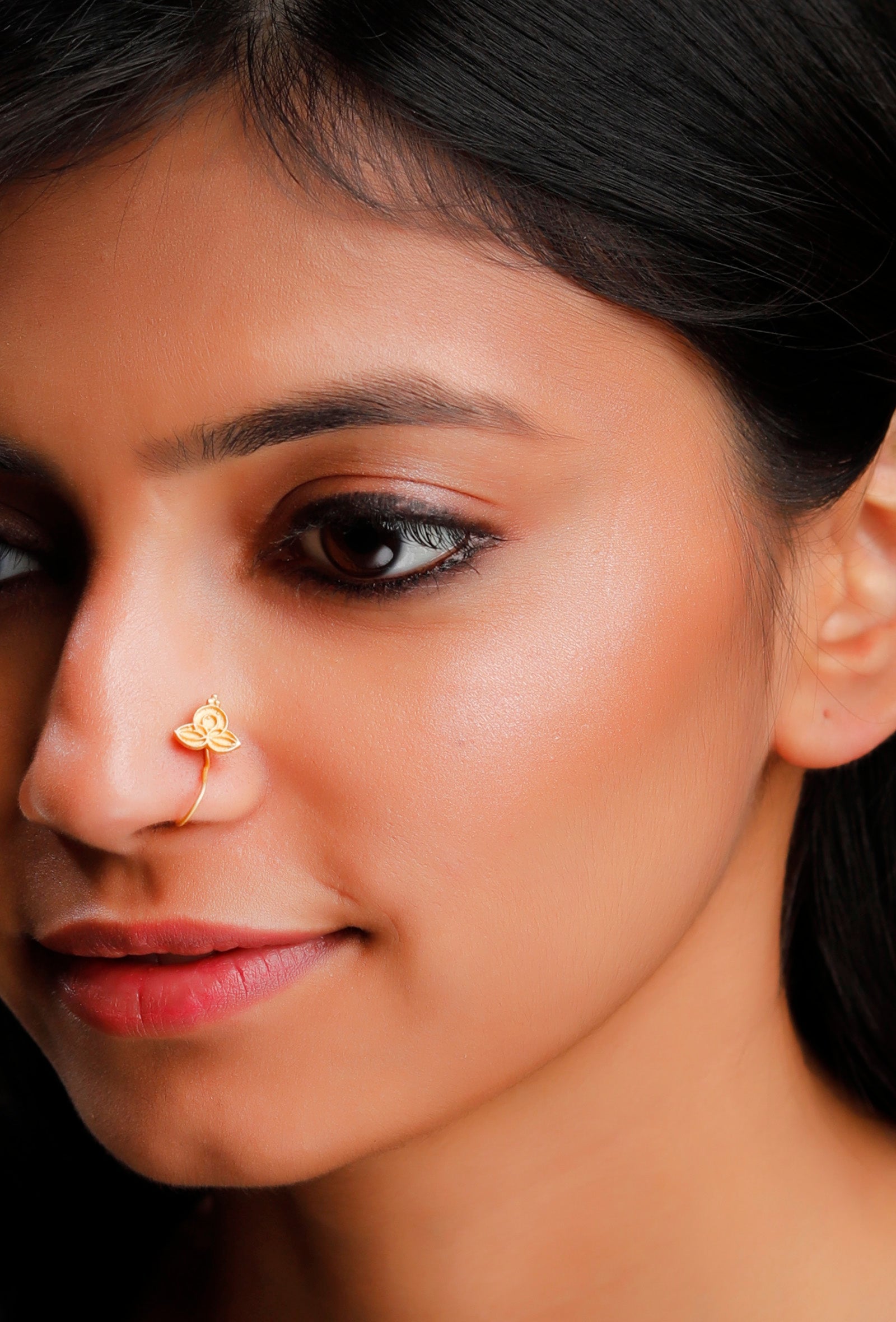 The Gold Trio Ancient Motif Brass Nosepin features three meticulously crafted elements, each adorned with intricate, ancient-inspired designs. Finished in a luxurious gold tone, this unique piece combines tradition with modern elegance, perfect for adding a sophisticated touch to any look.