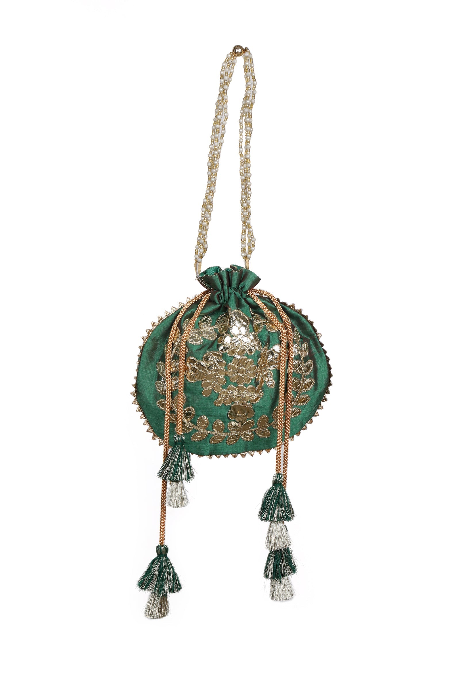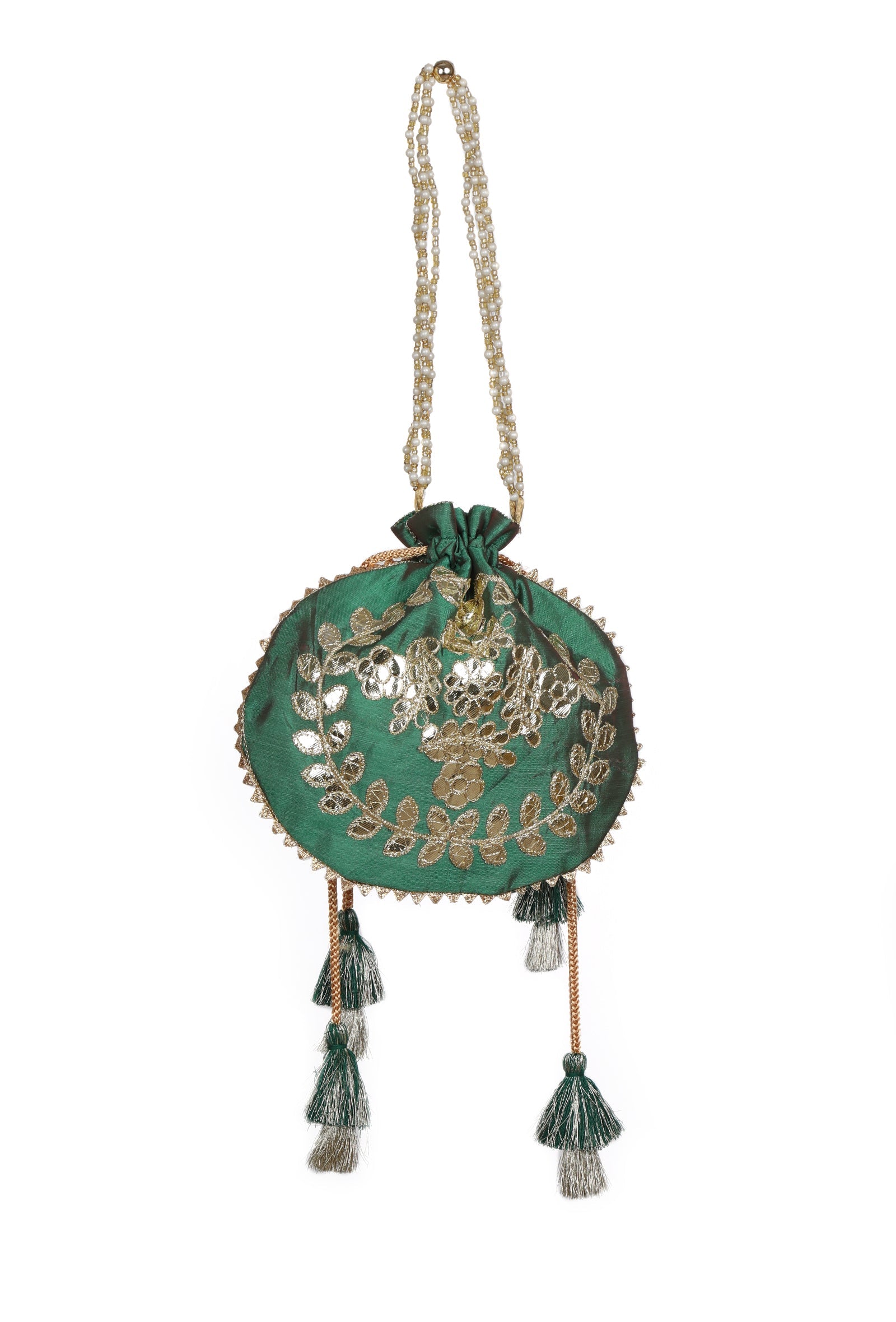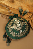 Midnight Green Gota Patti Silk Potli