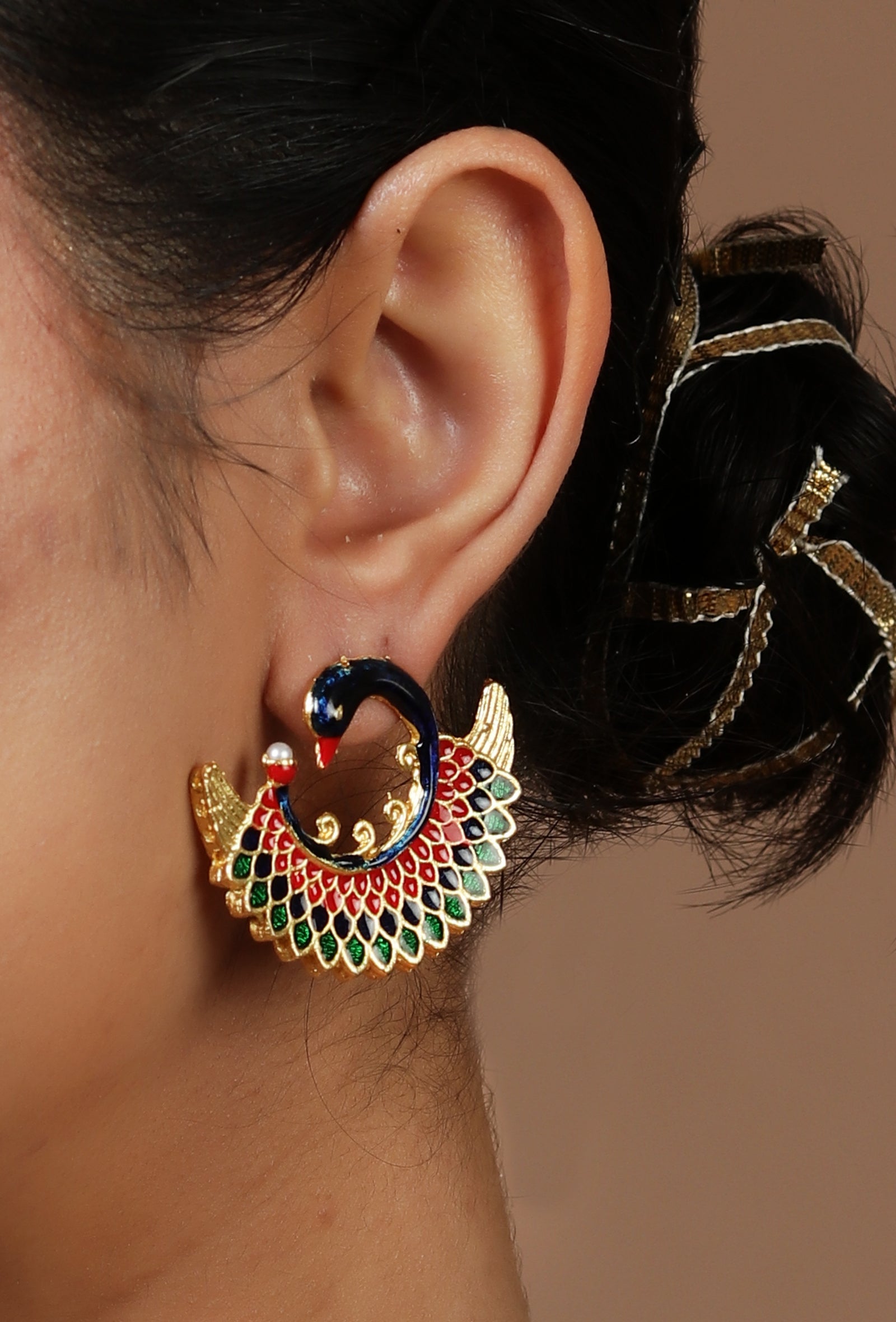 The Emerald Mist Oxidised Earrings feature a stunning blend of vintage design and vibrant green gemstones. Crafted with intricate detailing and finished in oxidised silver, these earrings offer a perfect balance of elegance and traditional charm for any occasion.