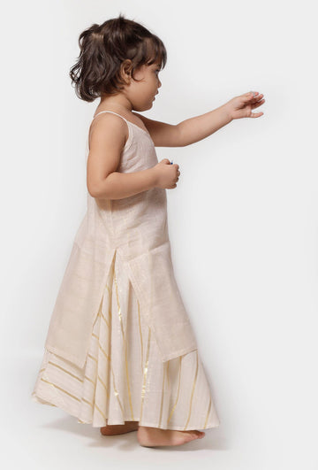 This beautiful Off white malmal Slip-stripes skirt is for your little ones. The malmal fabric is best for kids as it is super soft, made in 100% malamal and is uber comfortable.
