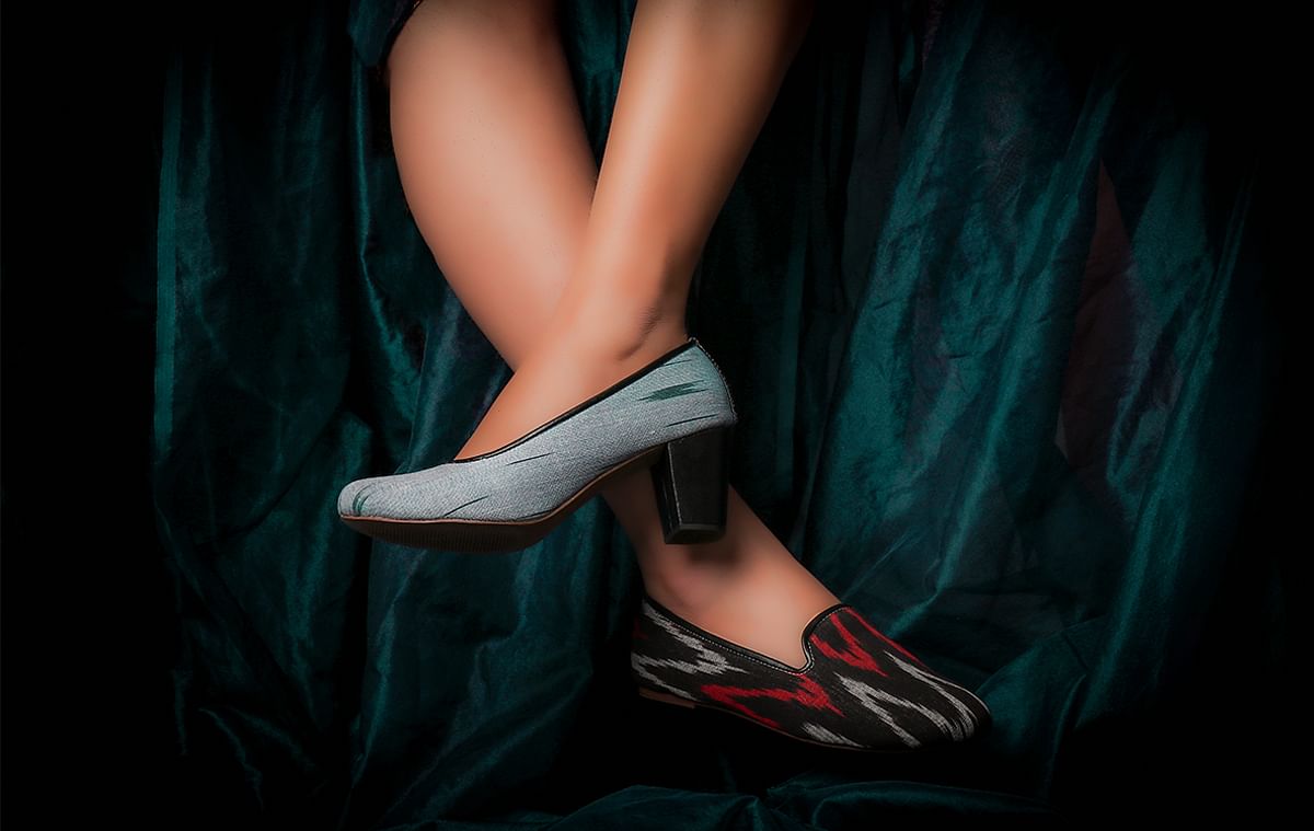 Walk in style with this authentic ikat print block heeled ballerina. Made in cruelty free leather, this grey and black mesmerising shade will go perfectly with all your attires.