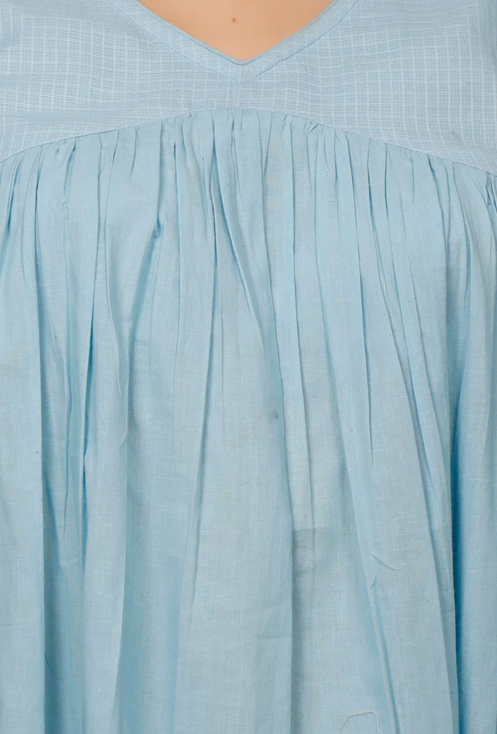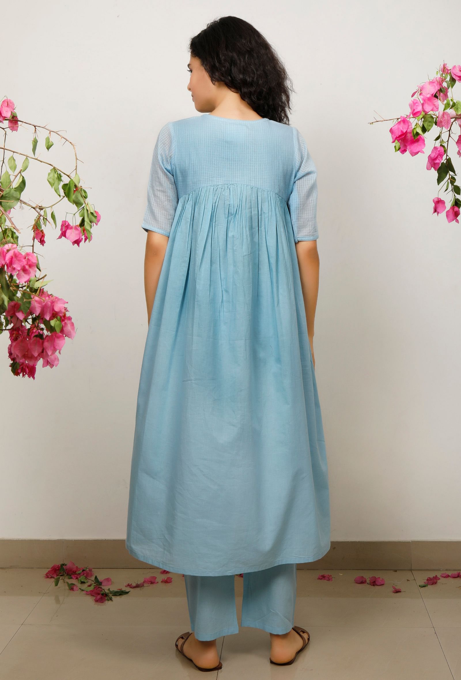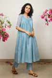 Set of 2: Blue Kota Cotton Gathered Kurta with Blue straight Cotton Pants