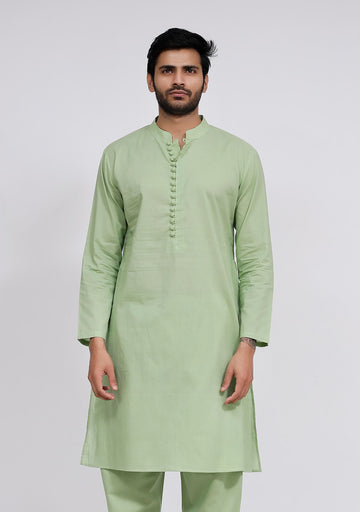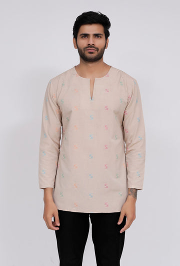 Cotton fabric is an ideal wear for summers. This cotton long kurta is lightweight giving you a comfort all day long and is extremely soft on the skin. Featuring coconut buttons with Nehru collar. Perfect for covering up from the...