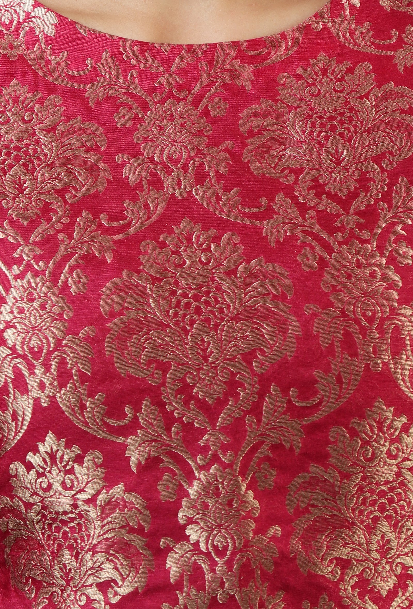 Crimson Red Brocade Chanderi Straight Kurta
