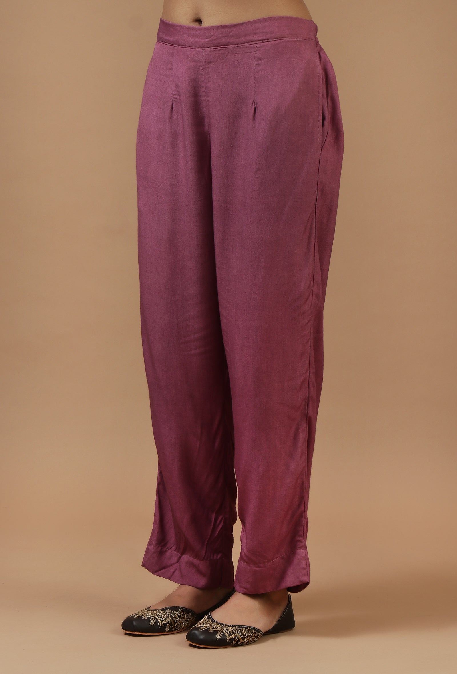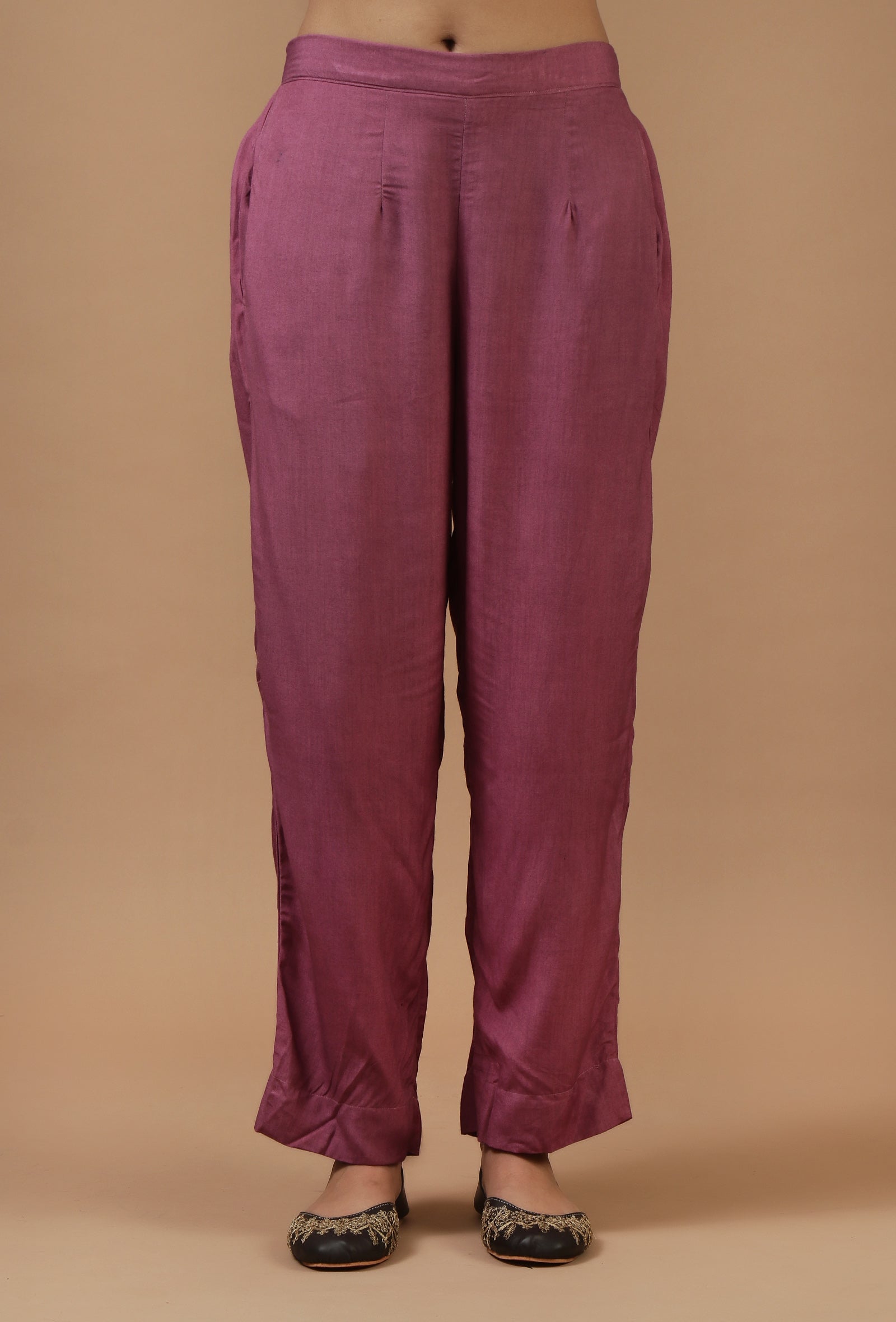 The wine straight-fit pant is tailored from smooth Shantoon fabric, providing comfort with a clean, elegant fall. Its minimal design and versatile silhouette make it an ideal ethnic bottom for pairing with festive and everyday kurtas.