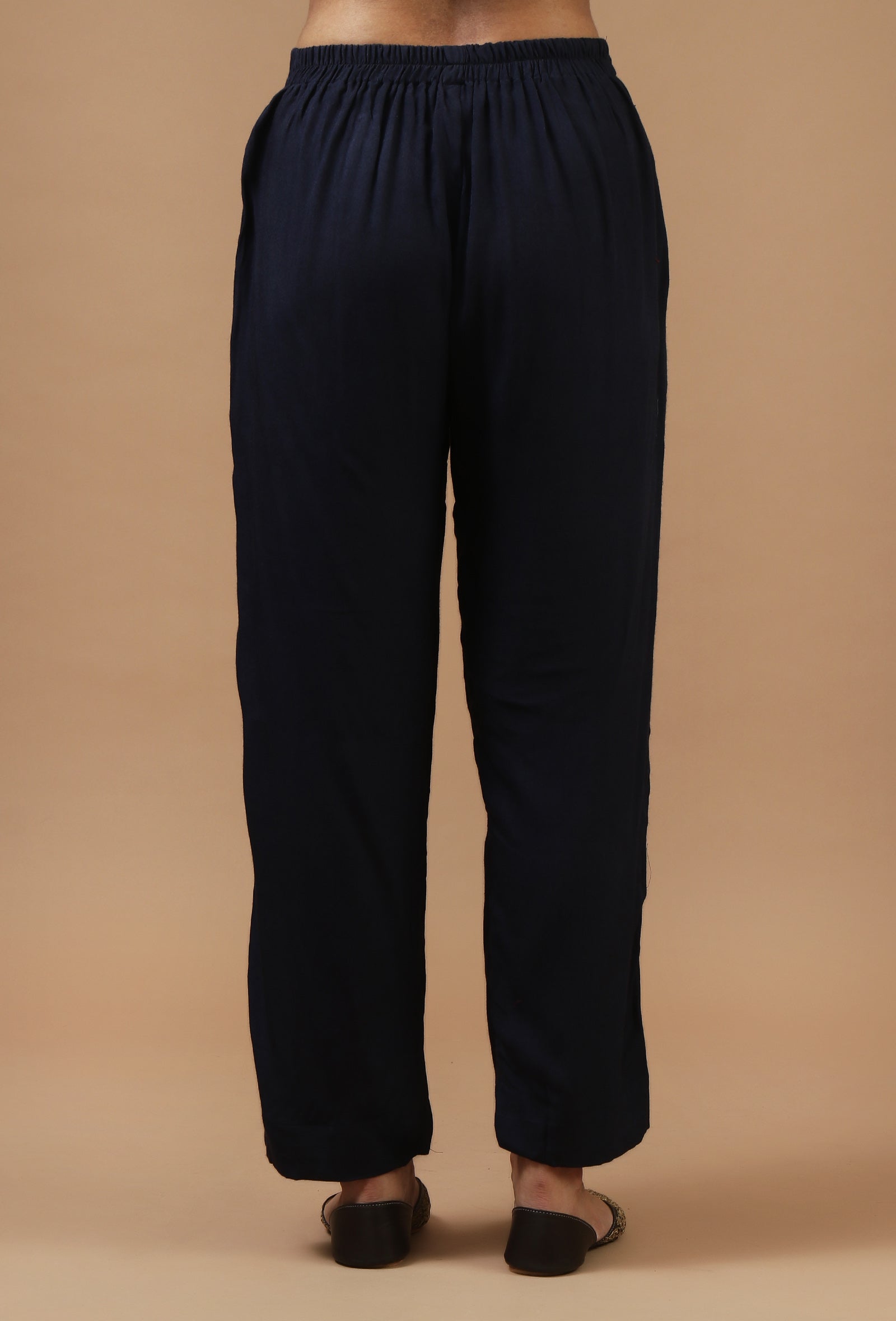 This elegant set of 2 features a black checkered Chanderi kurta paired with a solid Shantoon straight pant. The kurta showcases a subtle woven check pattern enhanced with delicate embellishment along the V-neckline, adding a refined festive touch. Balanced with a comfortable straight-fit pant, this ensemble is ideal for festive gatherings, evening occasions, and sophisticated ethnic styling.