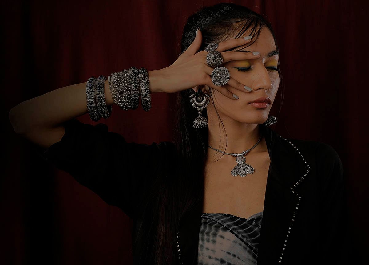 Embrace bold tradition with the Tribal Radiance Oxidized Necklace and Earrings set. Inspired by indigenous artistry, its intricate carvings and antique finish exude raw elegance. A perfect blend of heritage and contemporary style, making every look effortlessly striking and unique....