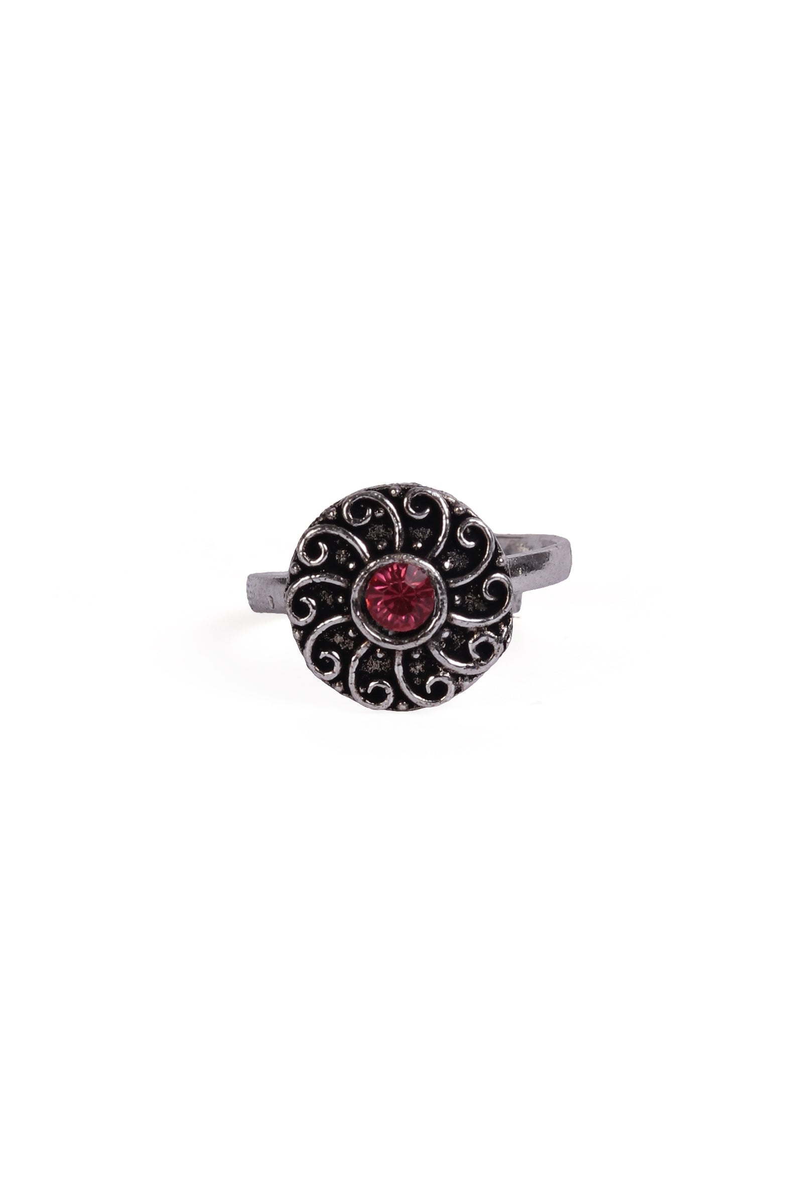 Yukti Red Stone German Silver Adjustable Toe Ring