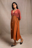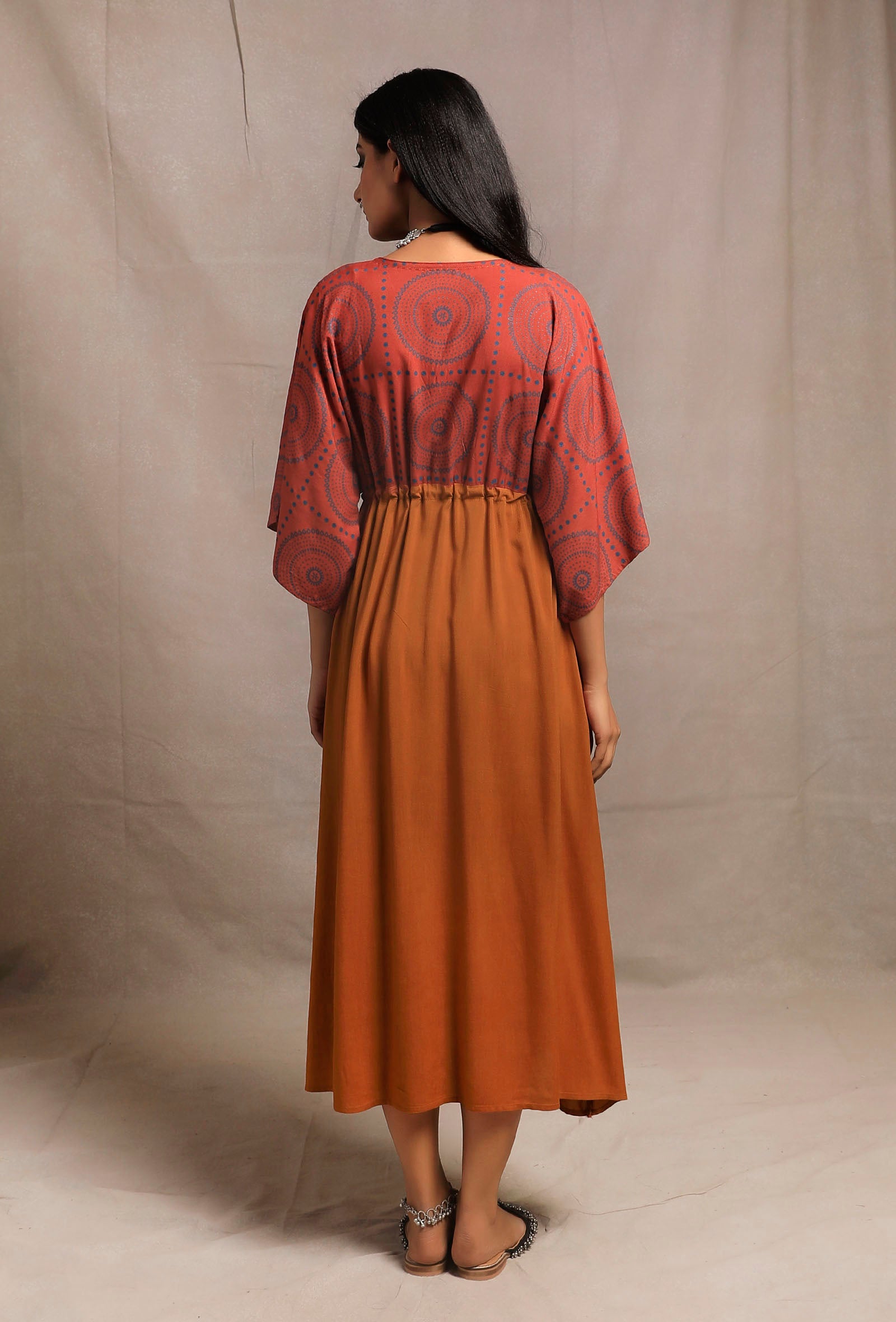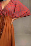 Brick-Orange V Neck Front Tie Kaftan dress