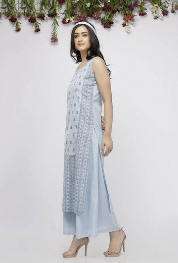 Blue Straight Fit Hand-Block Printed Kota Kurta
