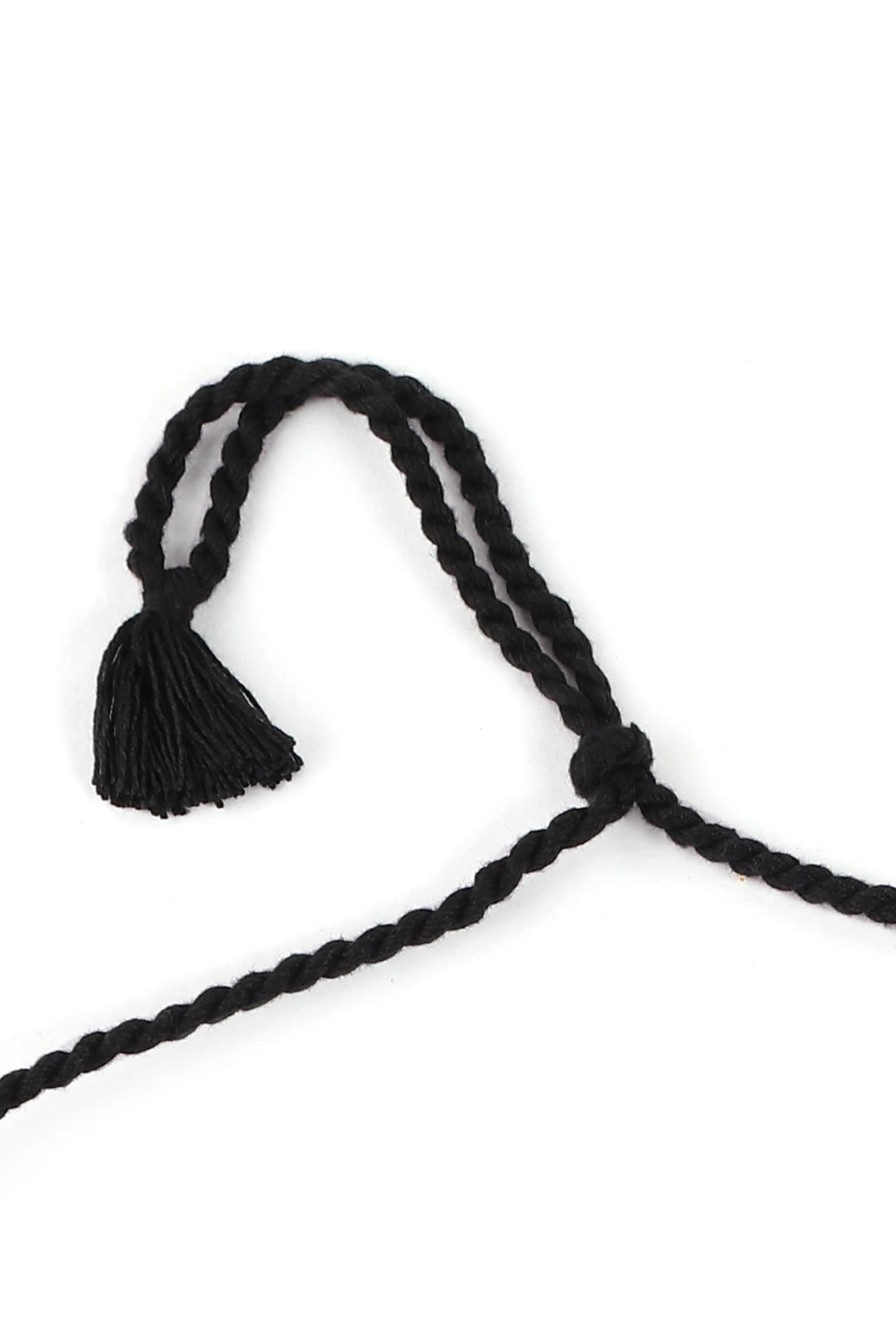 This tribal statement jewelry set will surely be the talk of the event. Handcrafted beautifully in red cotton thread and german silver, the choker, and earrings have the intricate detailing of coin and playful ghunghroo, which is sure to compliment your outfit.