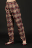 Chestnut Brown Woven Tartan Checks Woolen Straight Pants