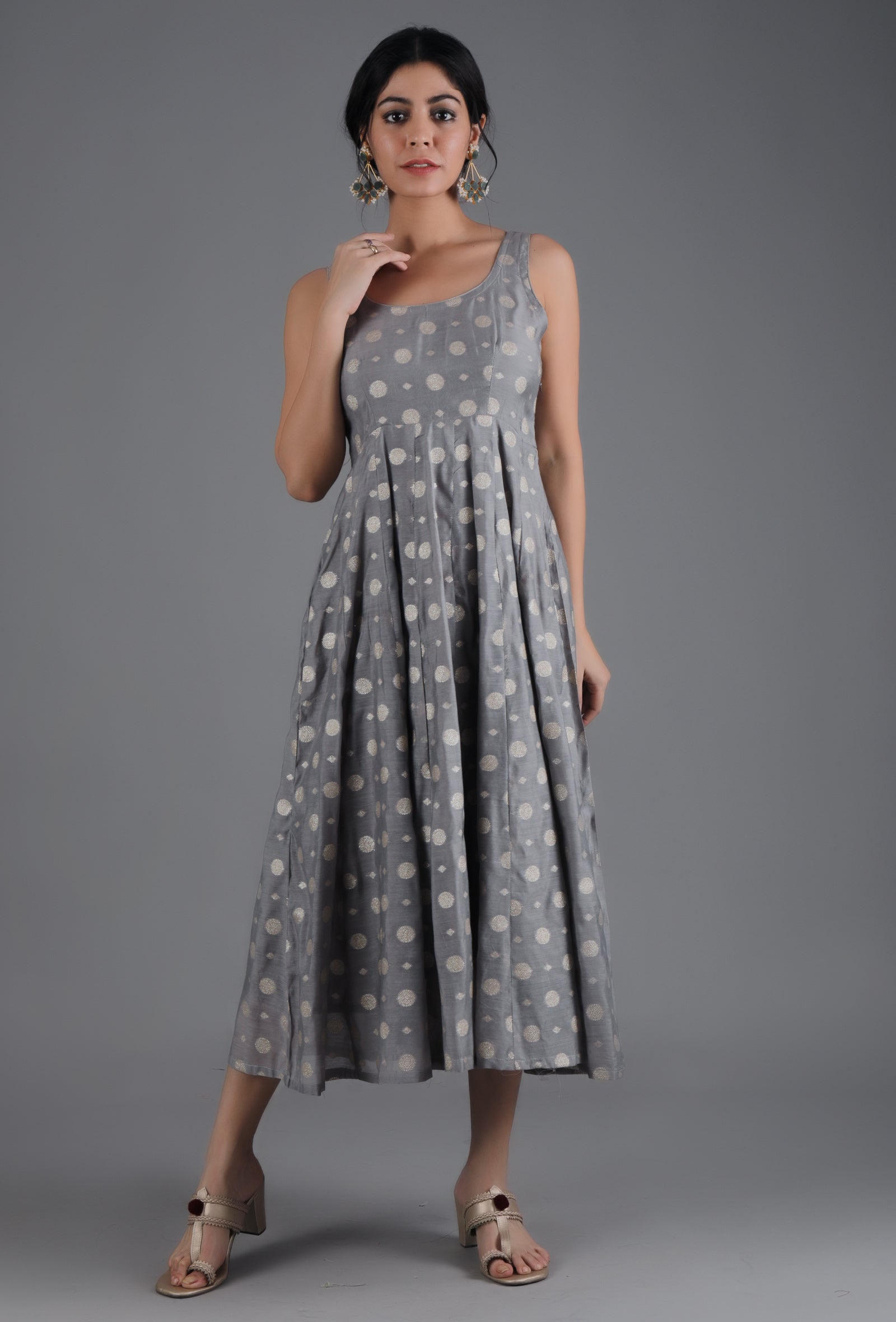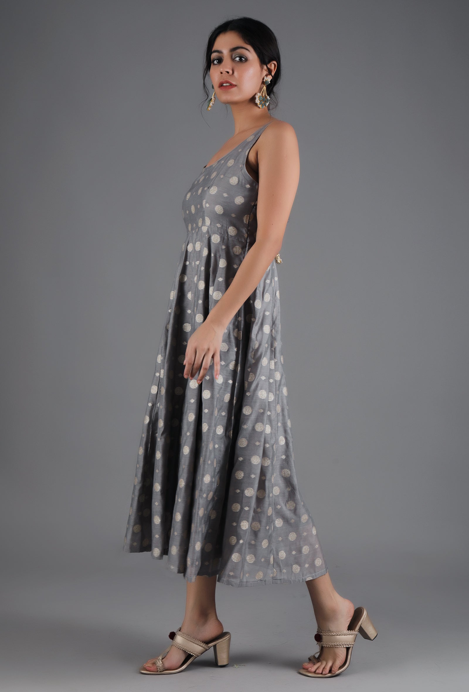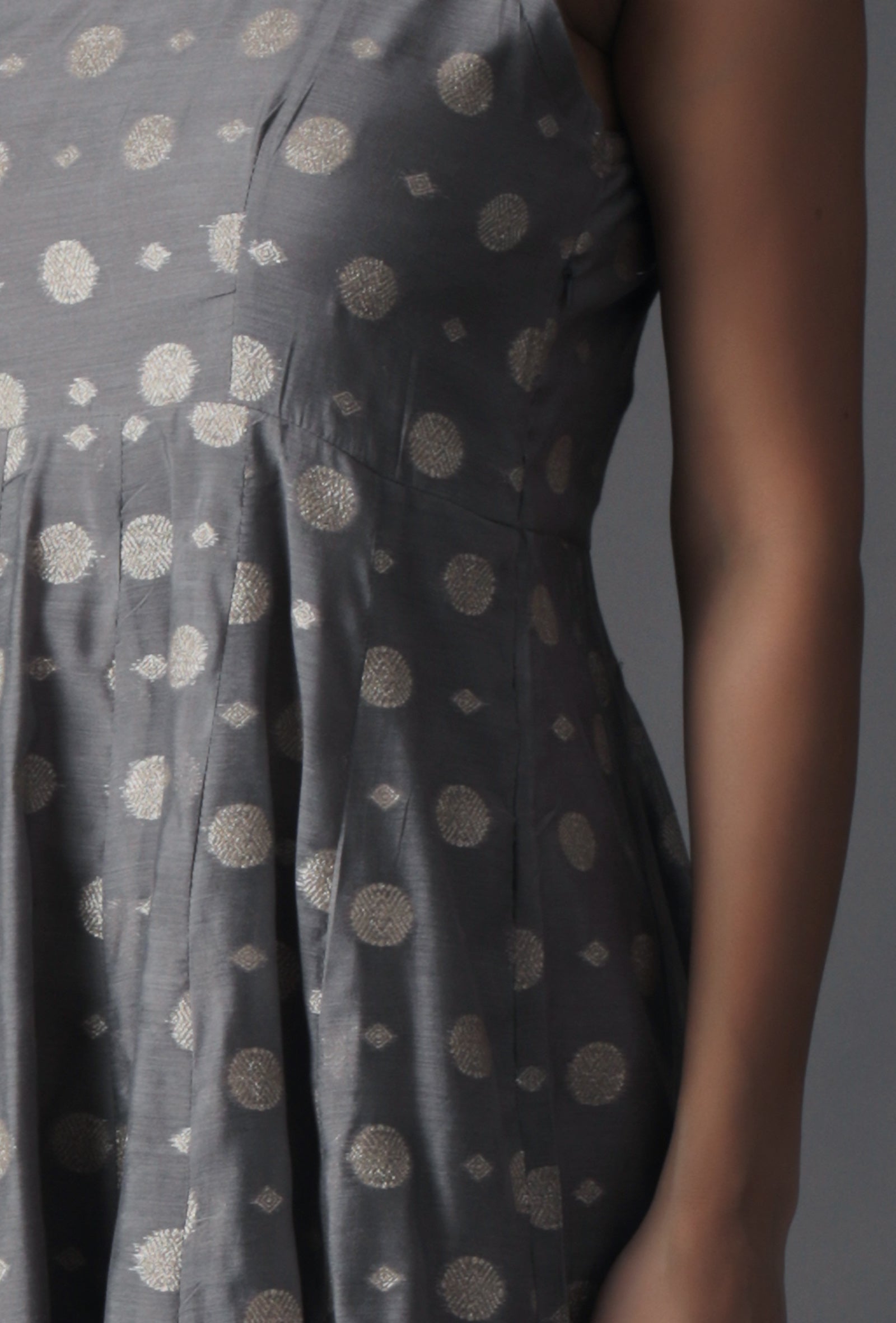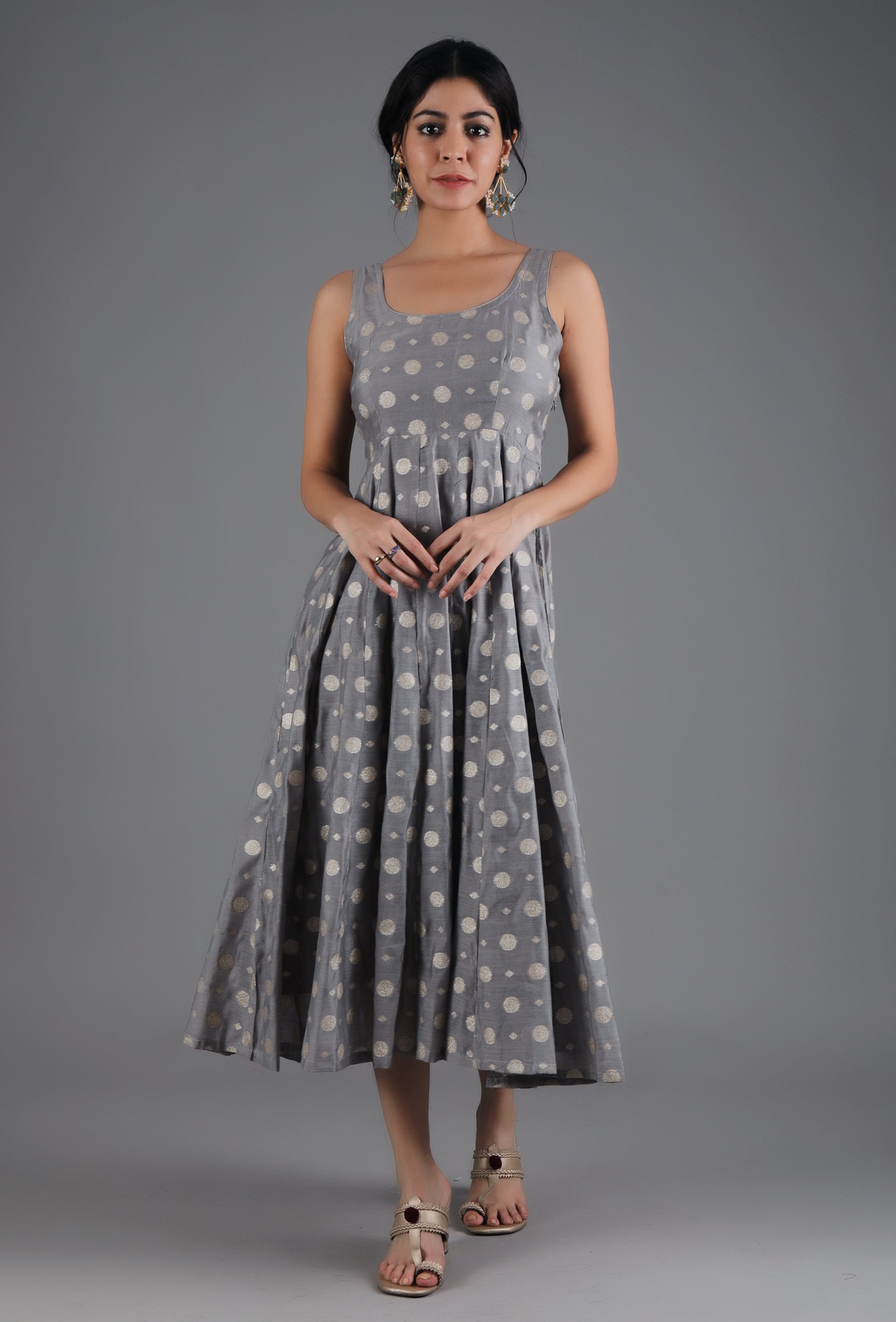 Metal Grey Chanderi Jacquard Sleeveless Dress