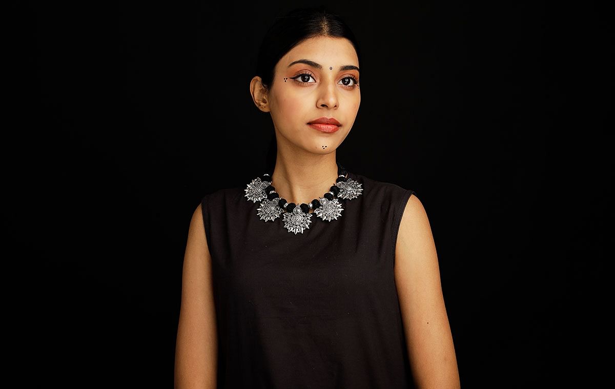 Holding intricate motifs and designs. We have got these amazing tribal jewelry pieces consisting of anklets and neckpieces. Handcrafted in pure silver & threads this jewelry blends traditional sensibilities.