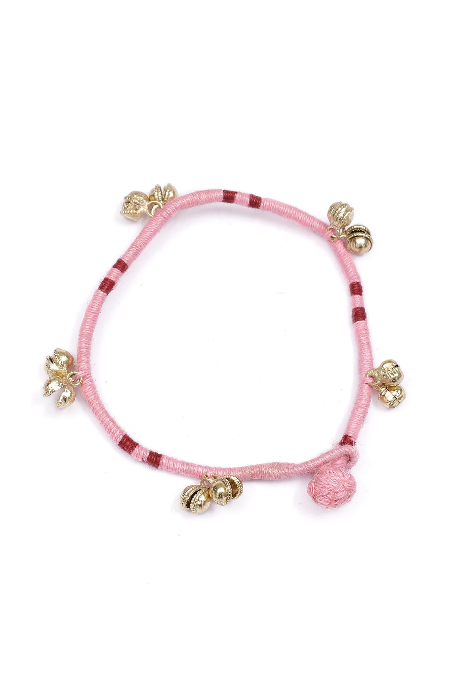 Set of 2: Rose Pink Ghungroo Tribal Anklet