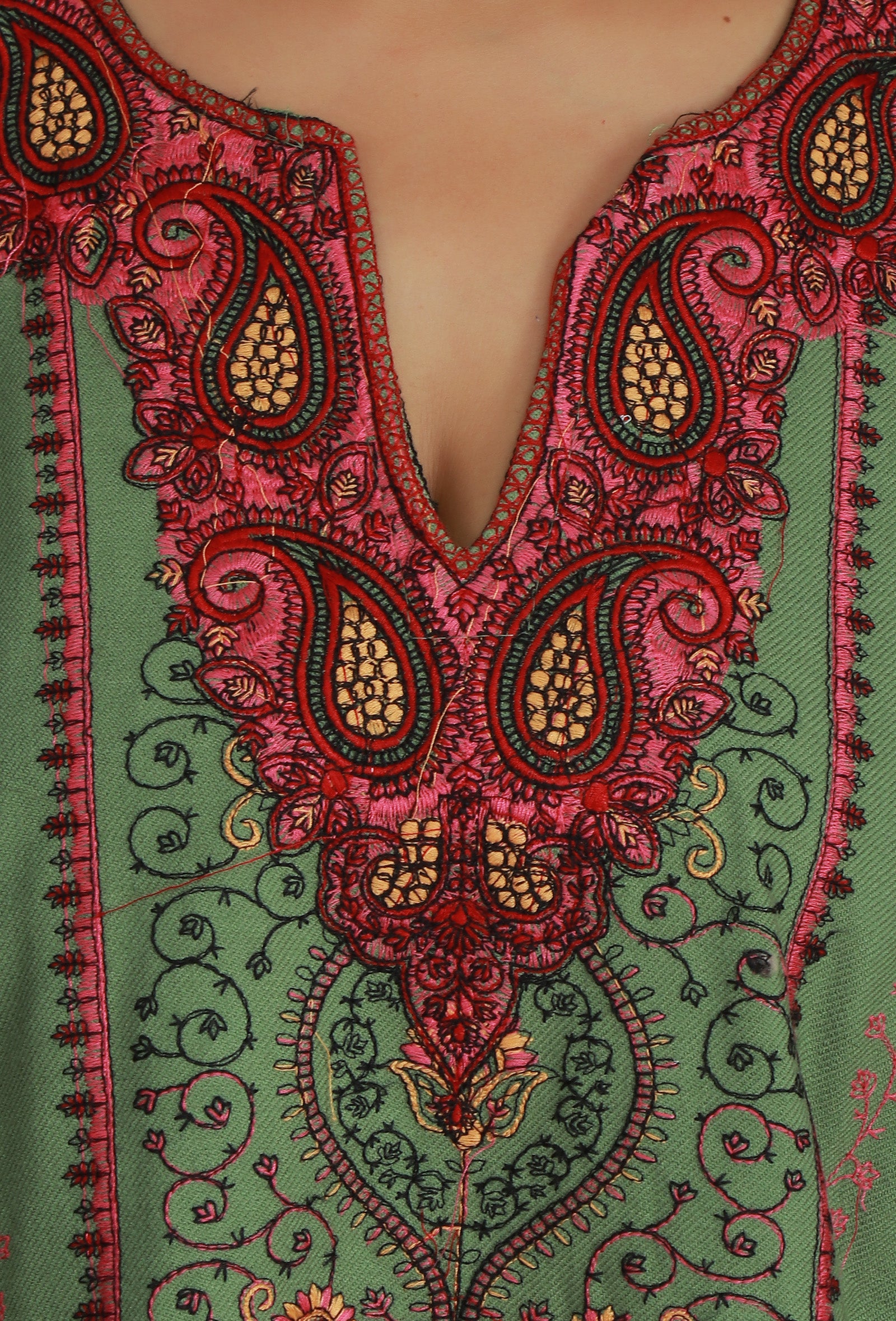 All-Over Aari Embroidered Sage Green Kashmiri Phiran- Free Size