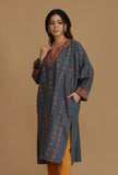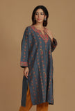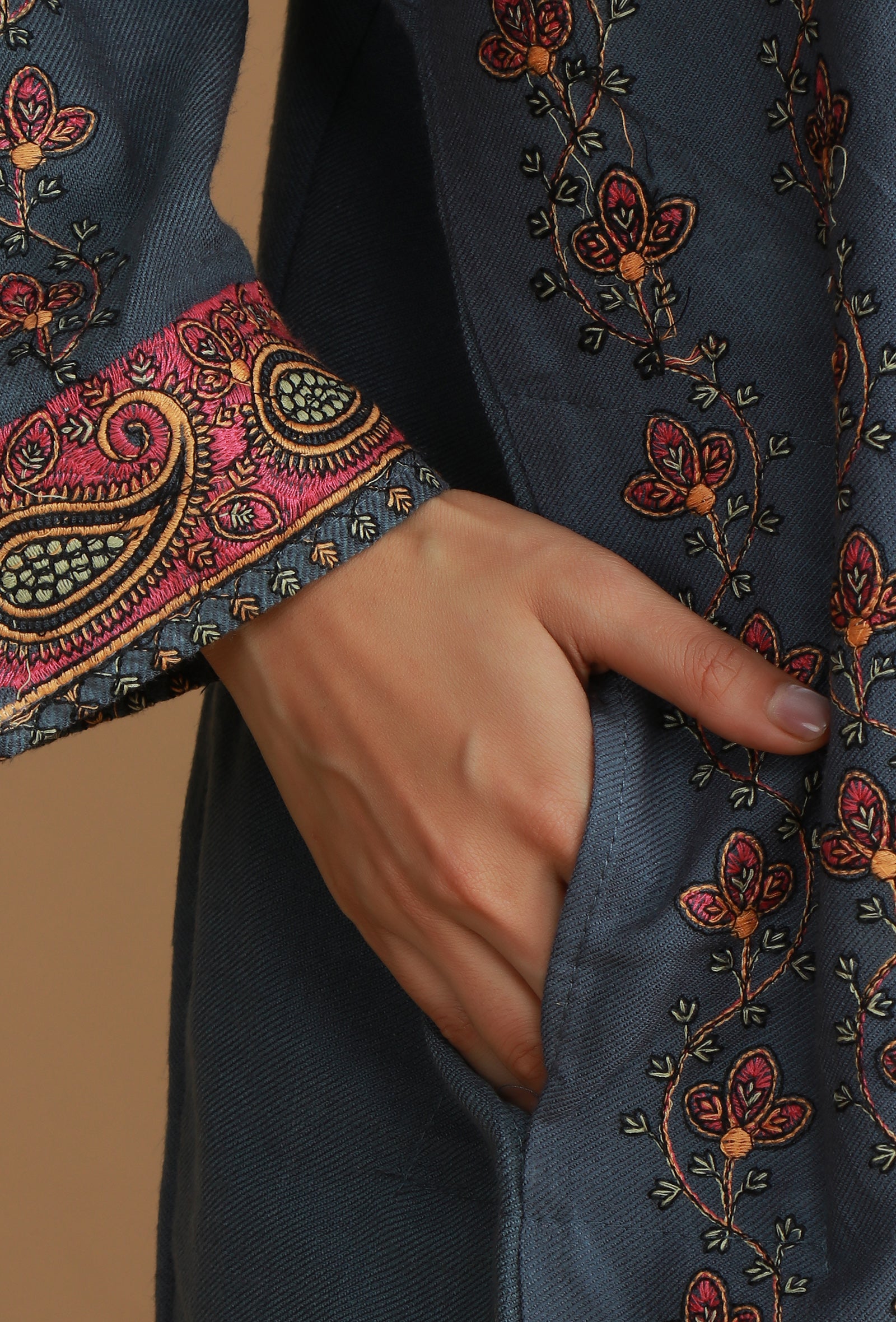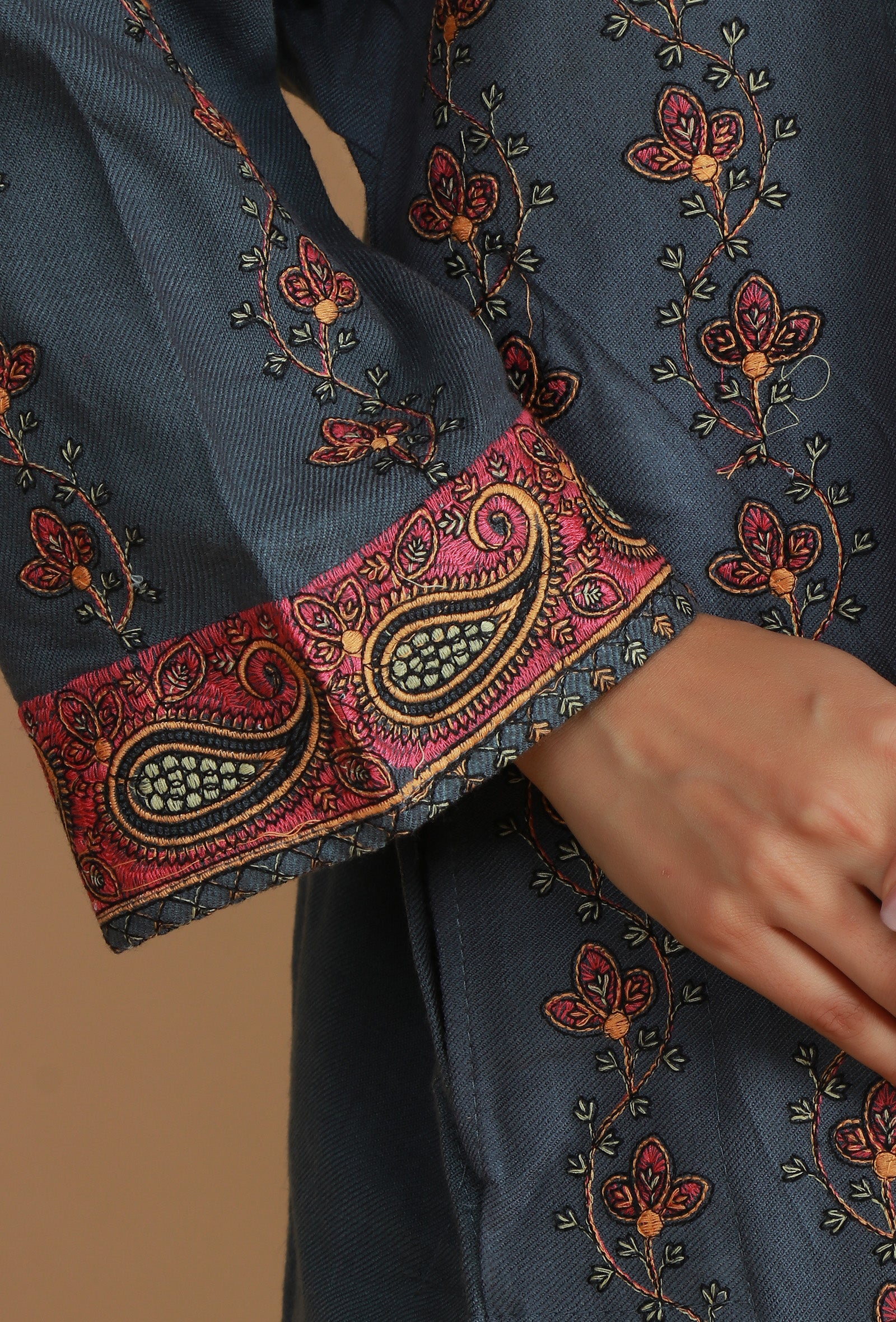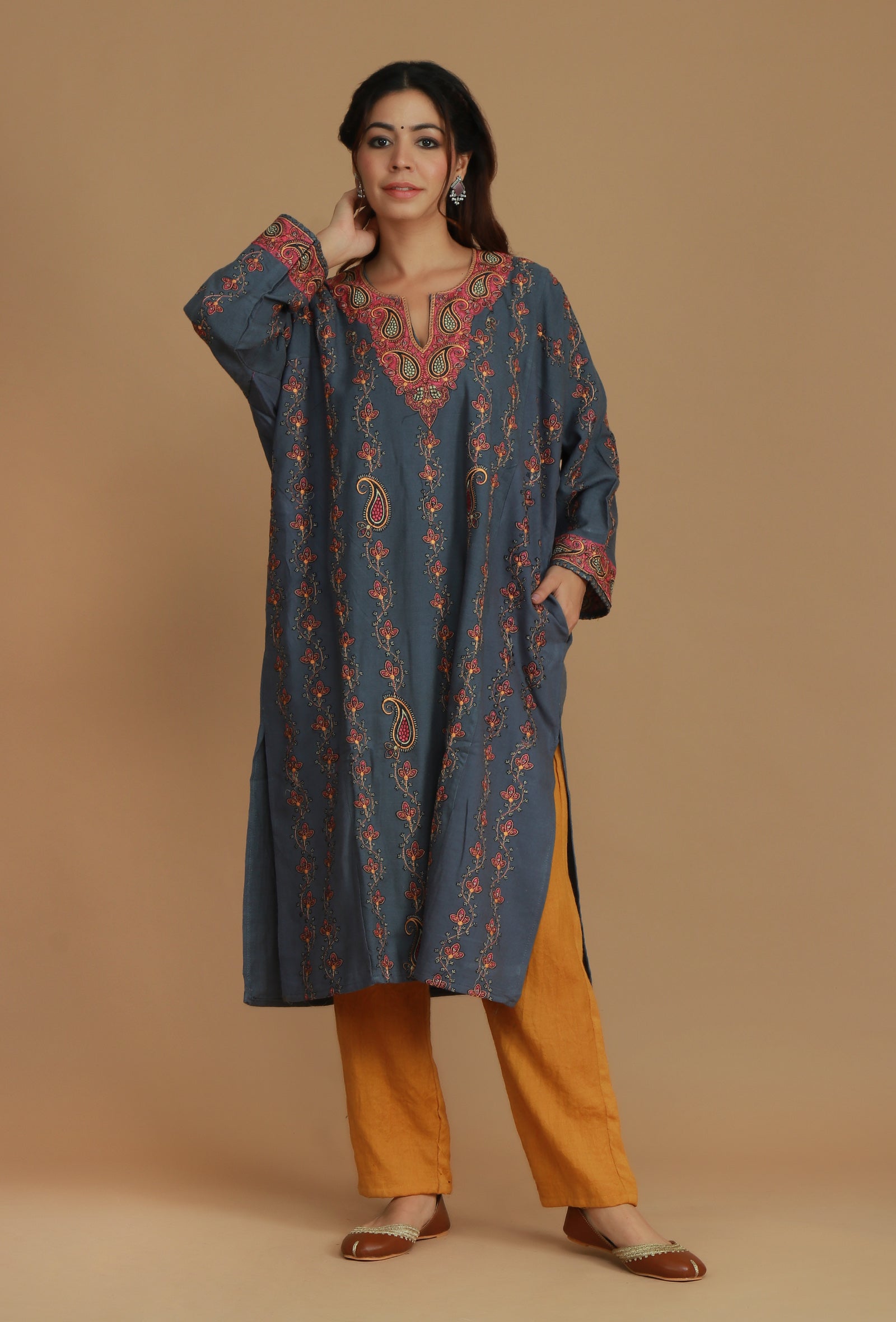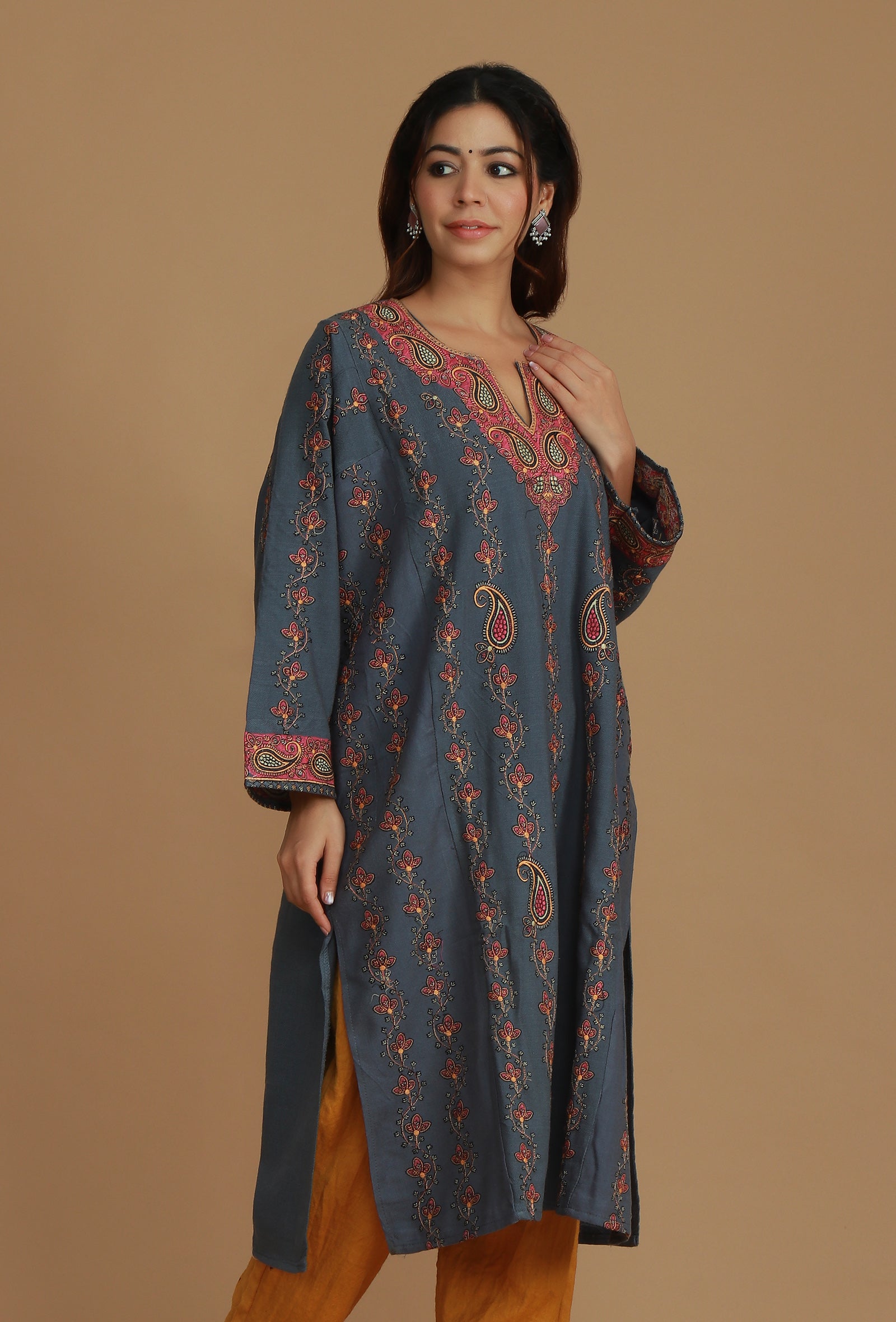 All-Over Embroidered Slate Grey Kashmiri Phiran- Free Size