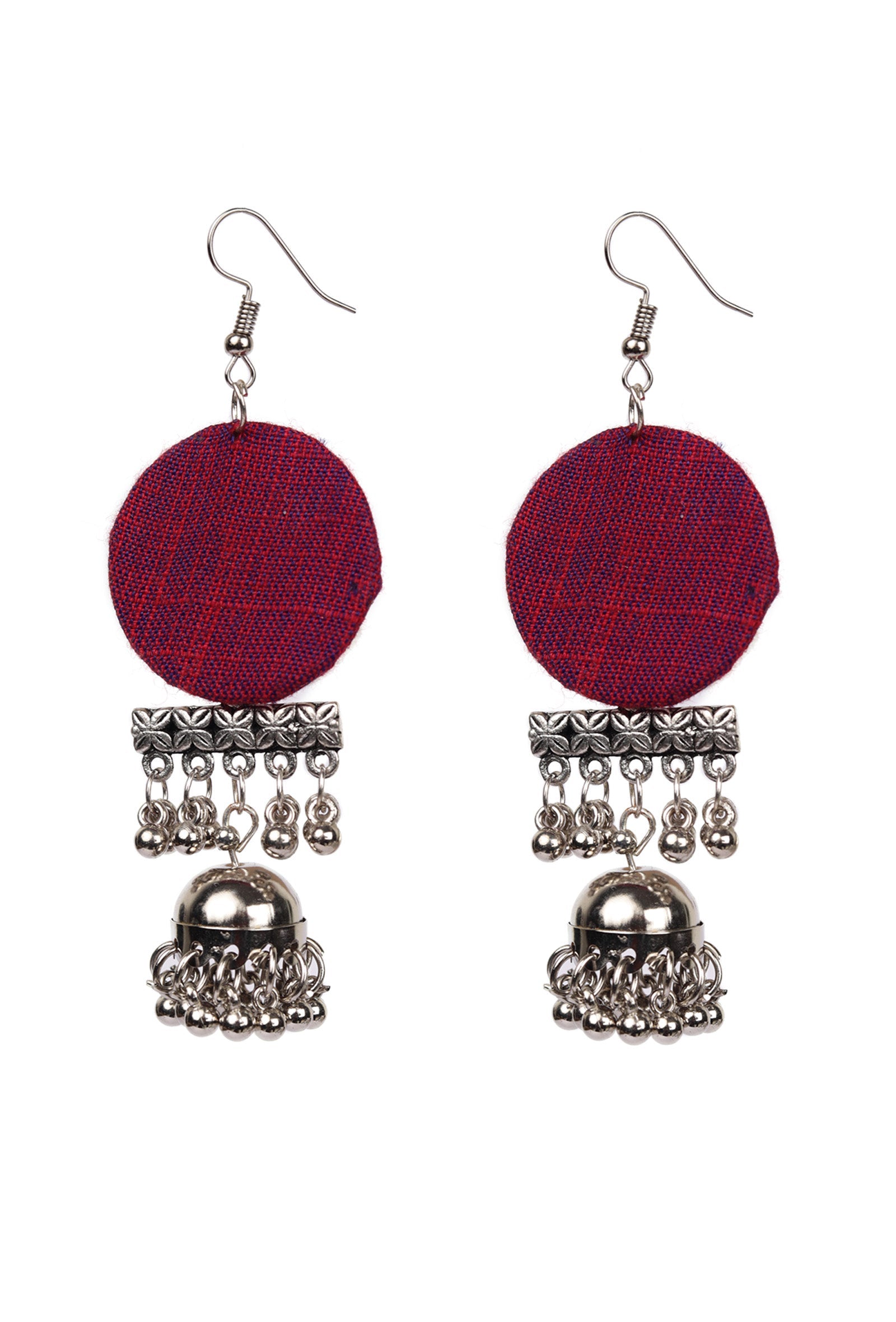 Elevate your style with our Designer Round Shape Pink Fabric Jhumki Earrings. Delicately crafted, these lightweight earrings blend traditional charm with modern design, adding a touch of grace to any look.